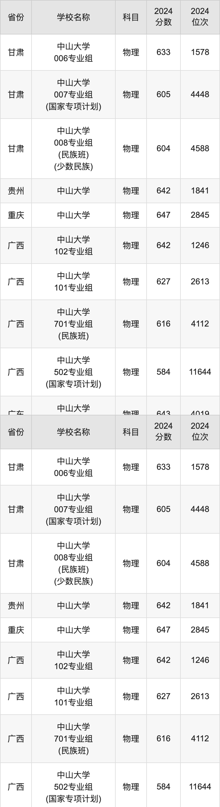 可见,中山大学的不同专业组,在“招生专业、录取分数线”等方面有较大区别。物理类专业组之间的分数线差距高达19分、历史类专业组之间的分数线差距高达5分。