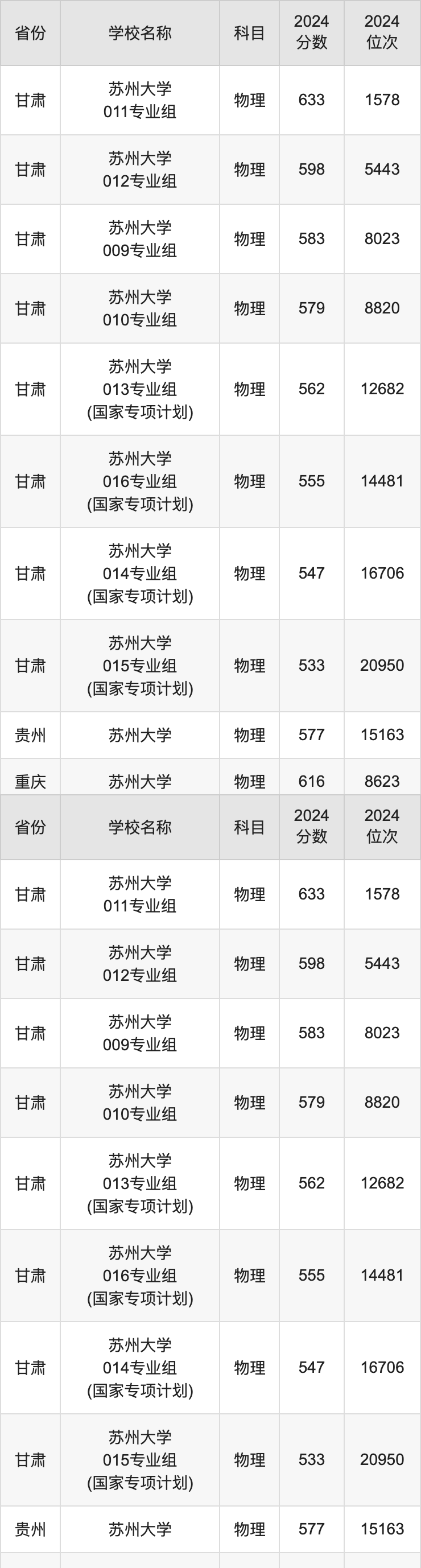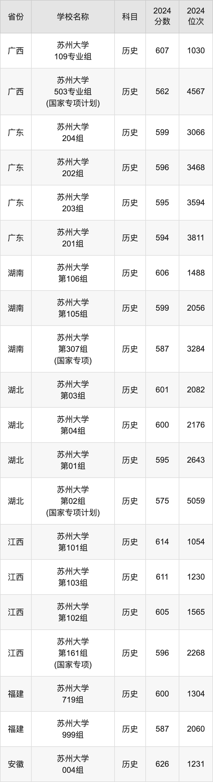可见,苏州大学的不同专业组,在“招生专业、录取分数线”等方面有较大区别。物理类专业组之间的分数线差距高达56分、历史类专业组之间的分数线差距高达30分。