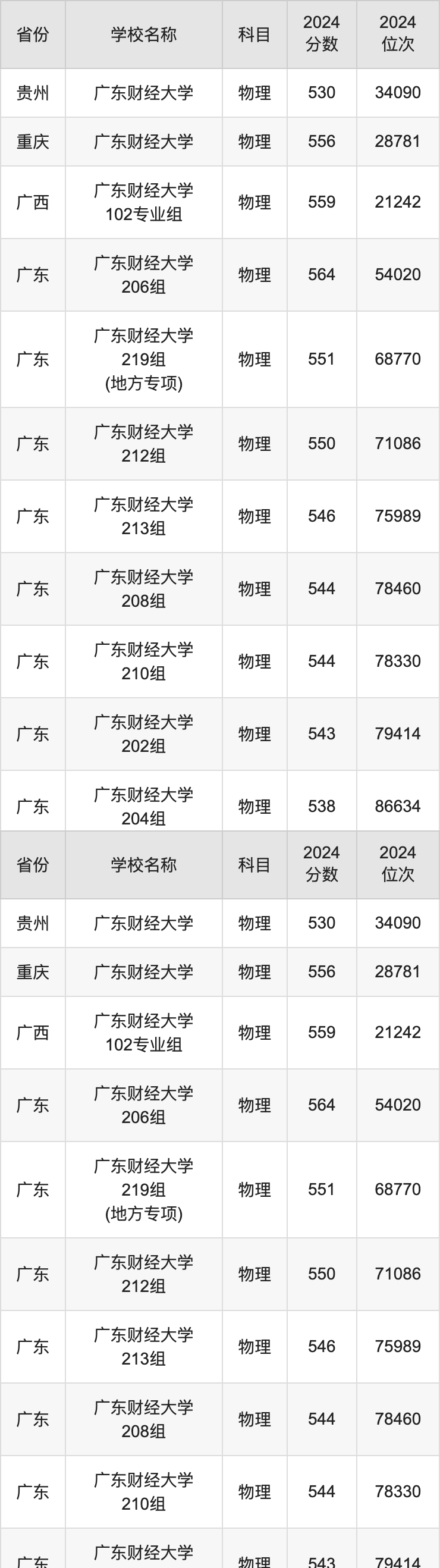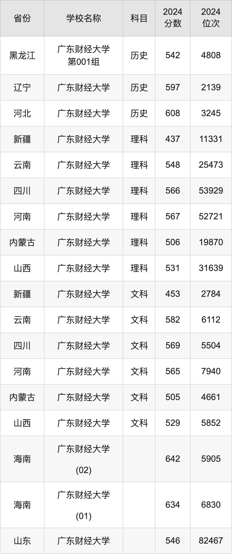 一、2024广东财经大学录取分数线