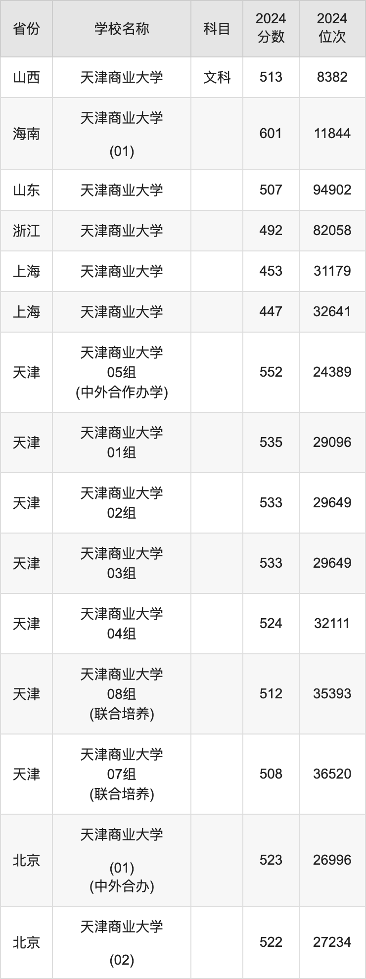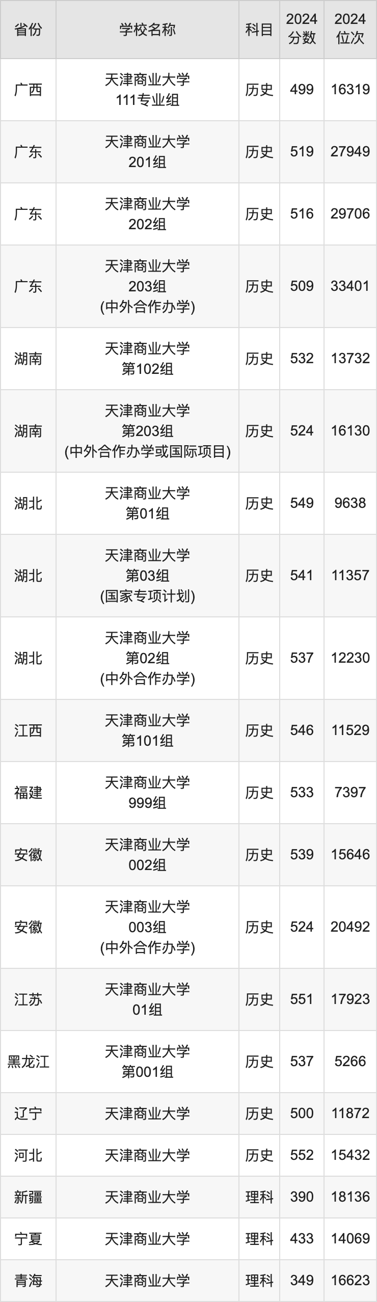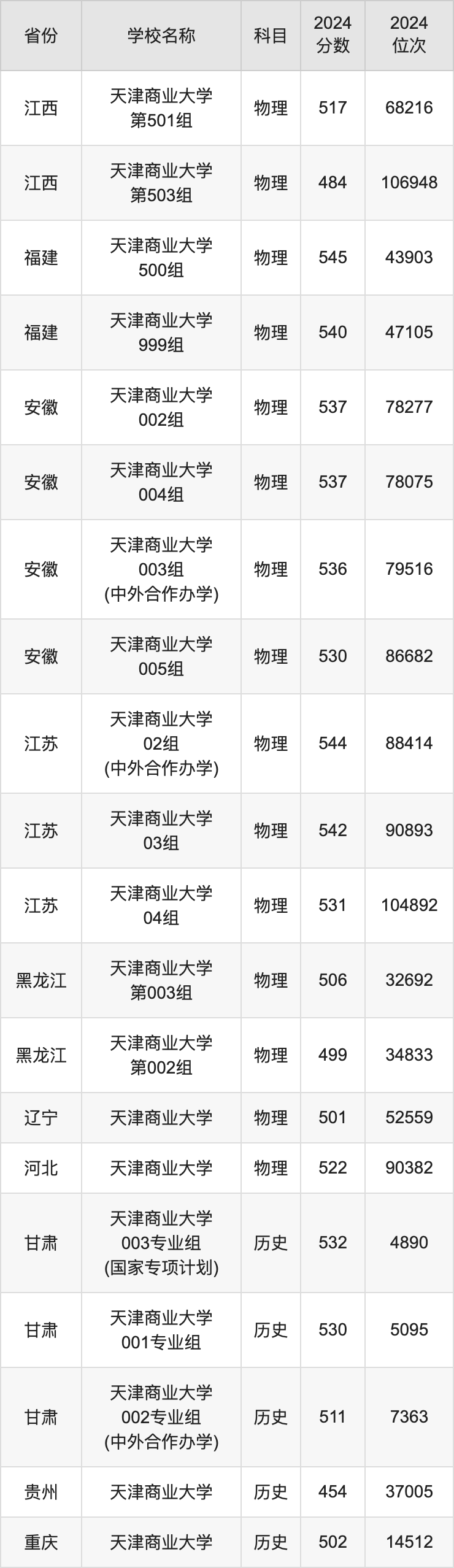 天津商业大学2024年有7个专业组面向天津市内的考生招生,05组的收分最高,分数线达552分,选科要求是不限,招生专业包含财务管理。07组的录取分数线最低,2024年为508分,选科要求是物理和化学,招生专业包含机械设计制造及其自动化。