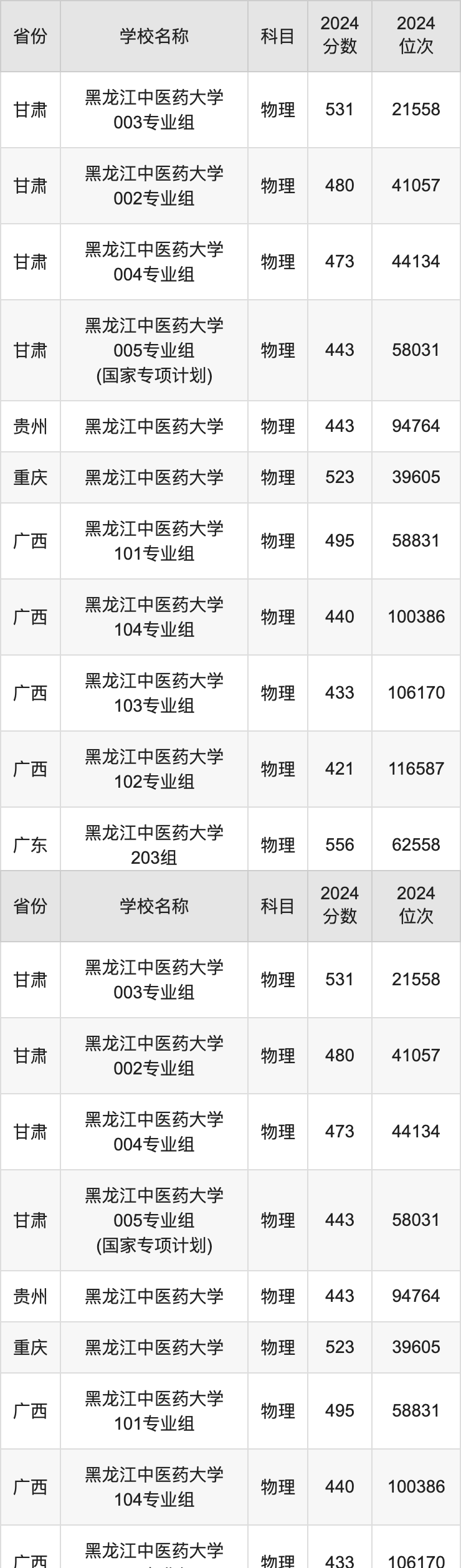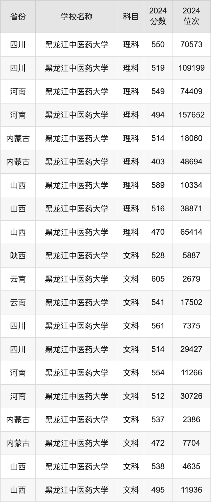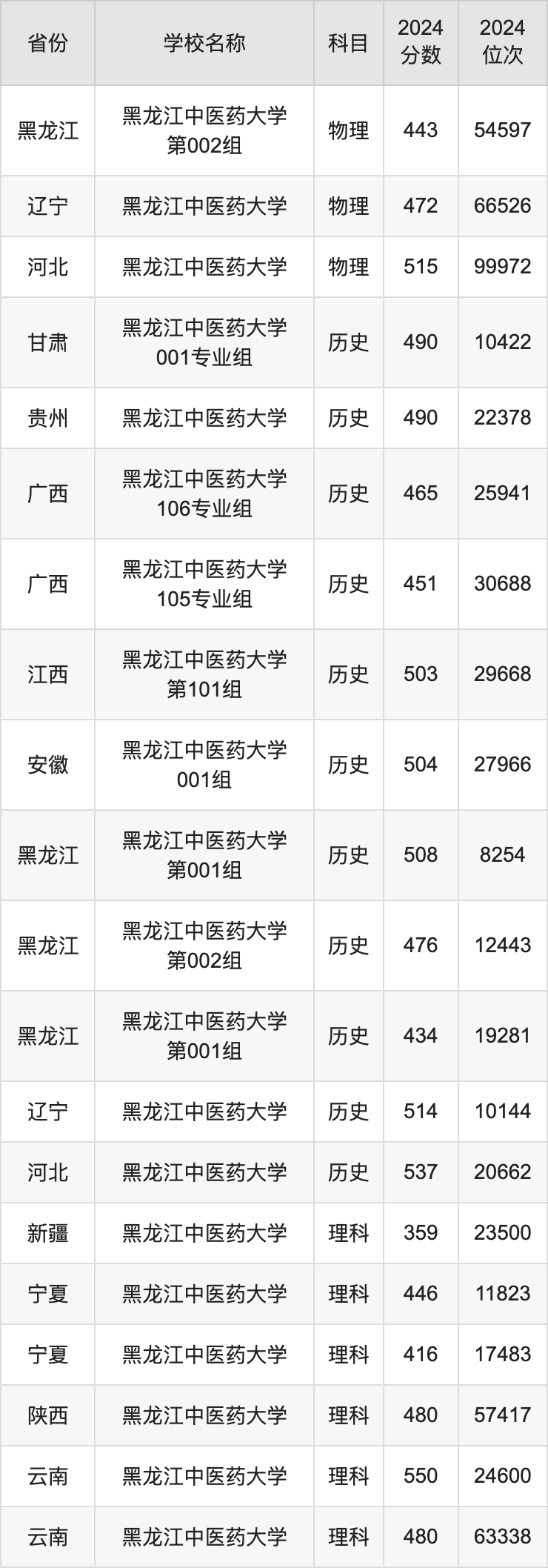 二、黑龙江中医药大学各专业录取分数线