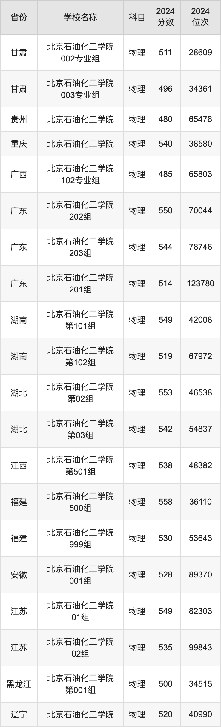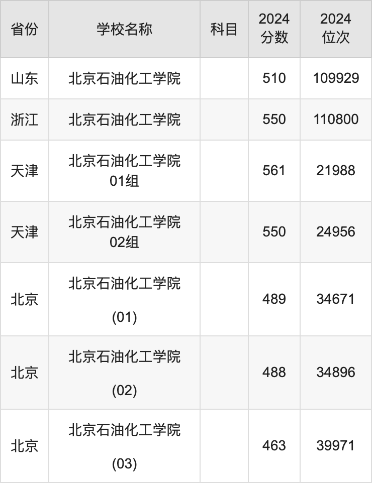 北京石油化工学院2024年有7个专业组面向北京市内的考生招生,01组的收分最高,分数线达489分,选科要求是不限,招生专业包含电子商务、会计学、市场营销、物流管理、审计学、旅游管理、会展、人力资源管理。03组的录取分数线最低,2024年为463分,选科要求是物理和化学,招生专业包含材料科学与工程、高分子材料与工程、化学工程与工艺、制药工程、生物制药、药物分析、机械工程、环境工程、机器人工程、能源与动力工程。