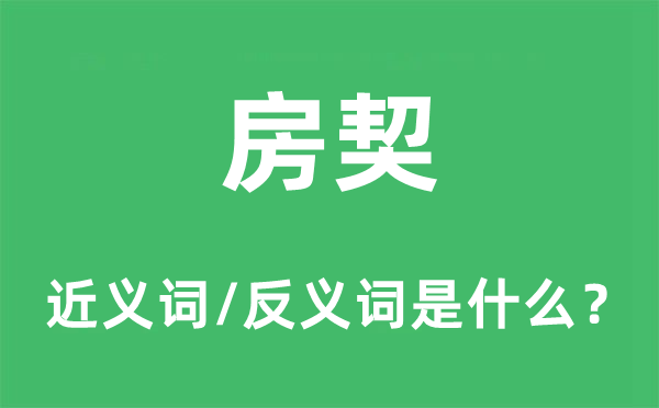 通过房契的近反义词,能够帮助大家了解房契的含义及用法,下面整理出房契的近义词和房契的反义词,以及房契的意思解释,希望对大家有所帮助。