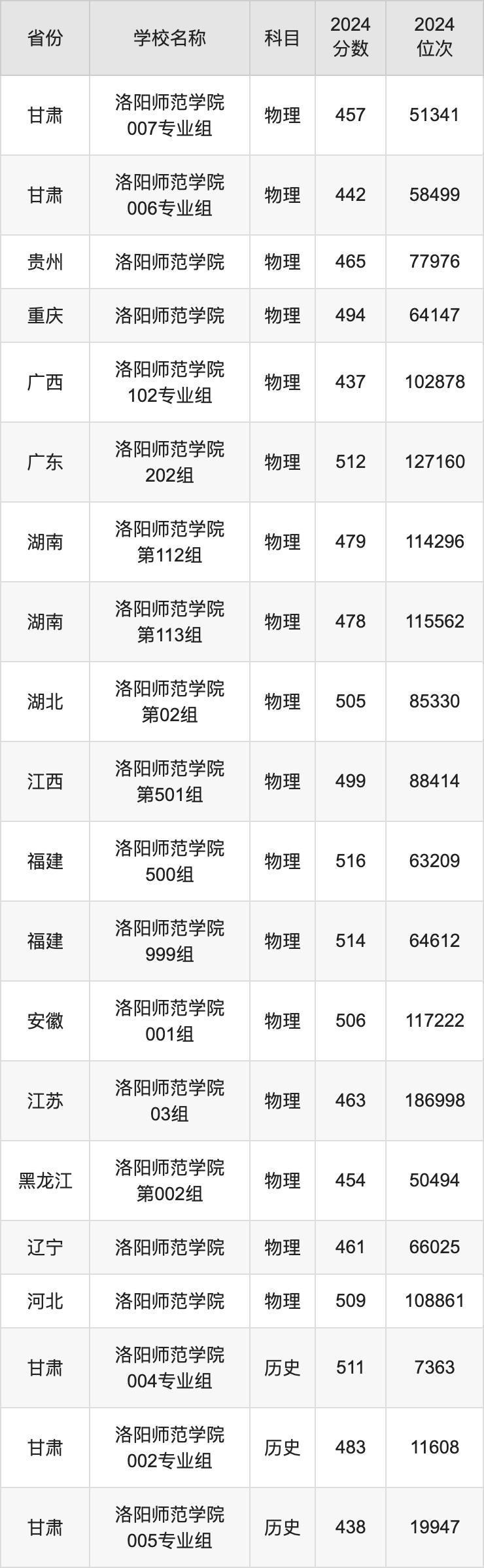 可见,洛阳师范学院的不同科目,在“招生专业、录取分数线”等方面有较大区别。不同科目组之间的分数线差距高达-20分。