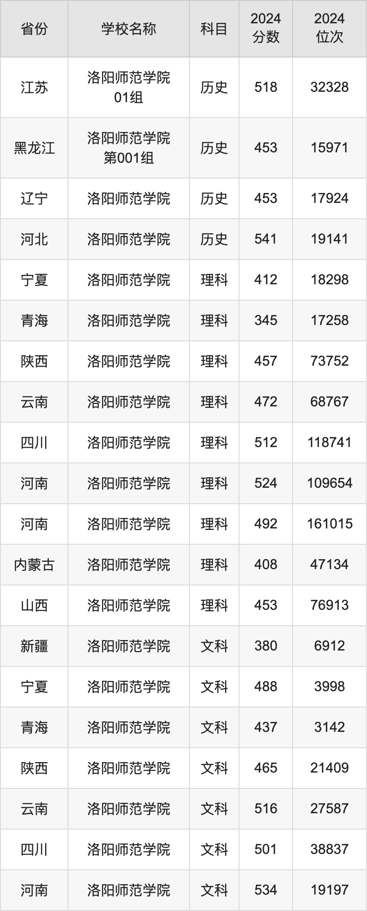 洛阳师范学院2024年面向河南省内理科的考生招生,分数线达492分,招生专业包含数学与应用数学、金融数学、国际经济与贸易、法学、教育学、学前教育、小学教育、日语、翻译、新闻学。