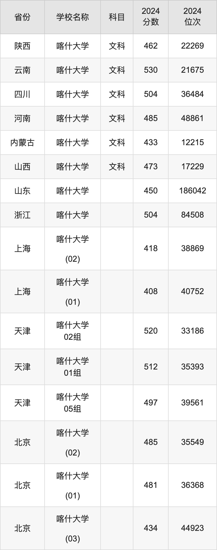 喀什大学2024年面向新疆维吾尔自治区内文科的考生招生,分数线达365分,招生专业包含汉语国际教育、法学、社会工作、俄语、翻译、广播电视学、国际经济与贸易、广告学、心理学、旅游管理。