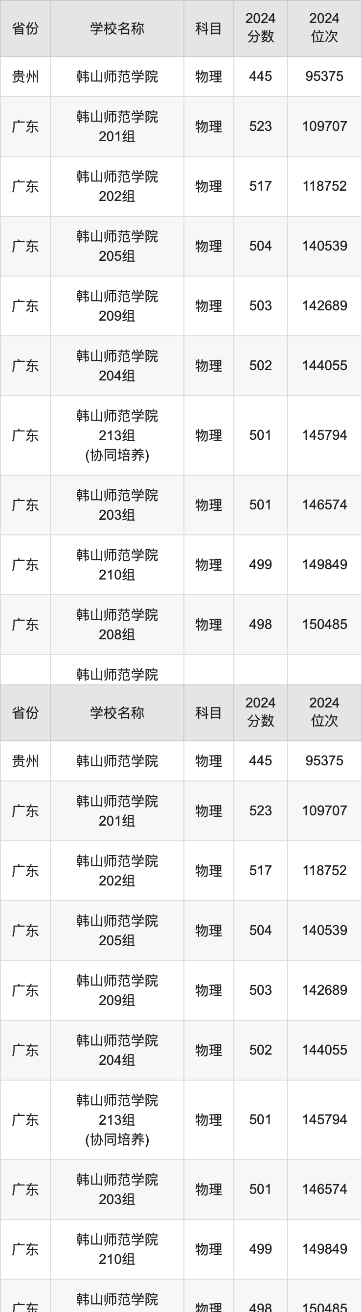 可见,韩山师范学院的不同专业组,在“招生专业、录取分数线”等方面有较大区别。物理类专业组之间的分数线差距高达41分、历史类专业组之间的分数线差距高达33分。