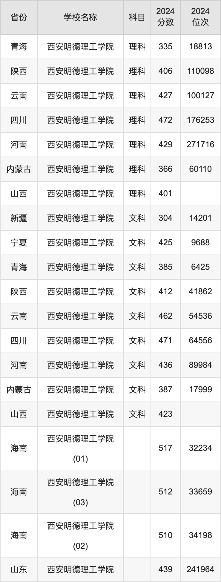 2024年西安明德理工学院在全国各省本科的最低录取分数线在283~517分之间。海南高考生最低517分能上西安明德理工学院、浙江高考生最低492分能上西安明德理工学院……下文将展示西安明德理工学院在全国26个高考省份中的本科最低投档录取分汇总!