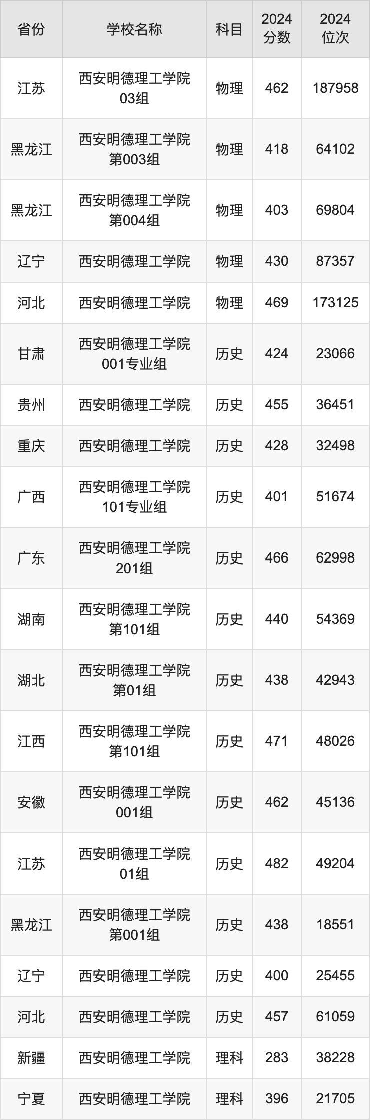 可见,西安明德理工学院的不同科目,在“招生专业、录取分数线”等方面有较大区别。不同科目组之间的分数线差距高达-6分。