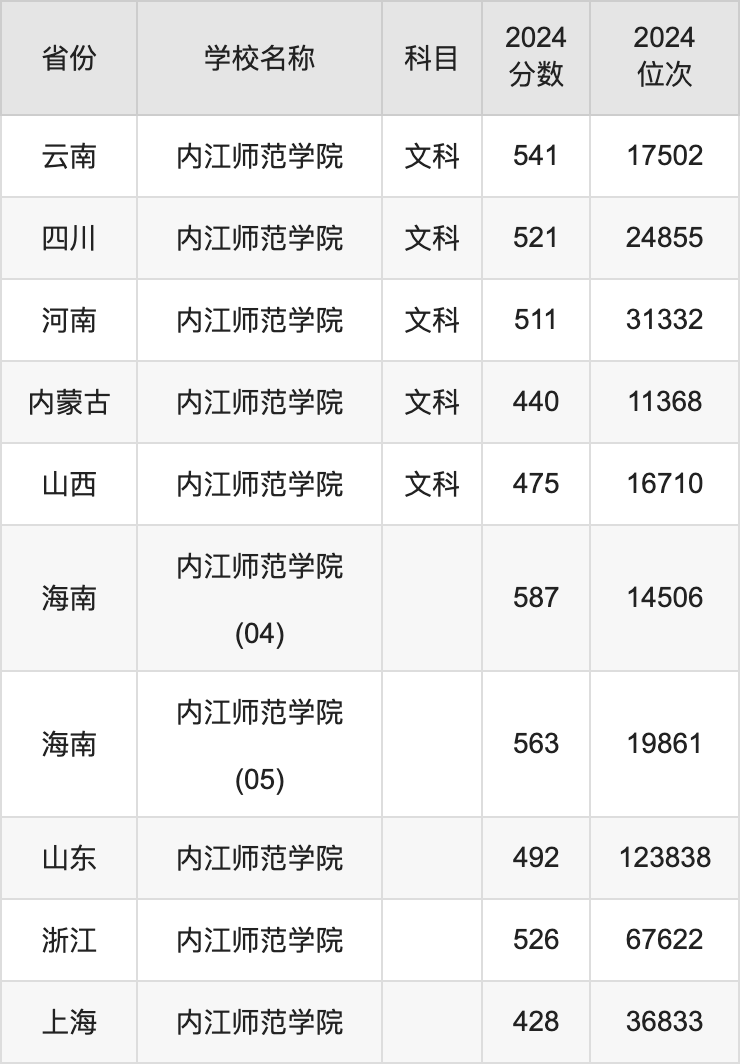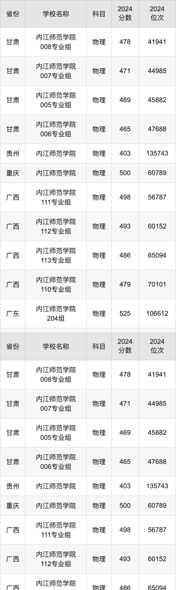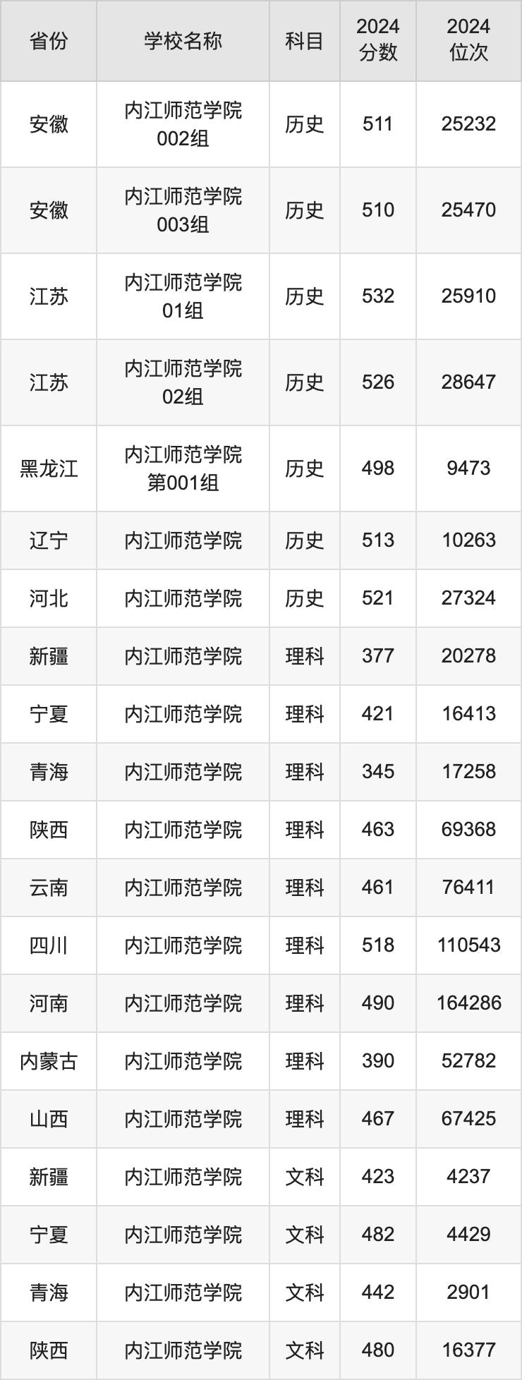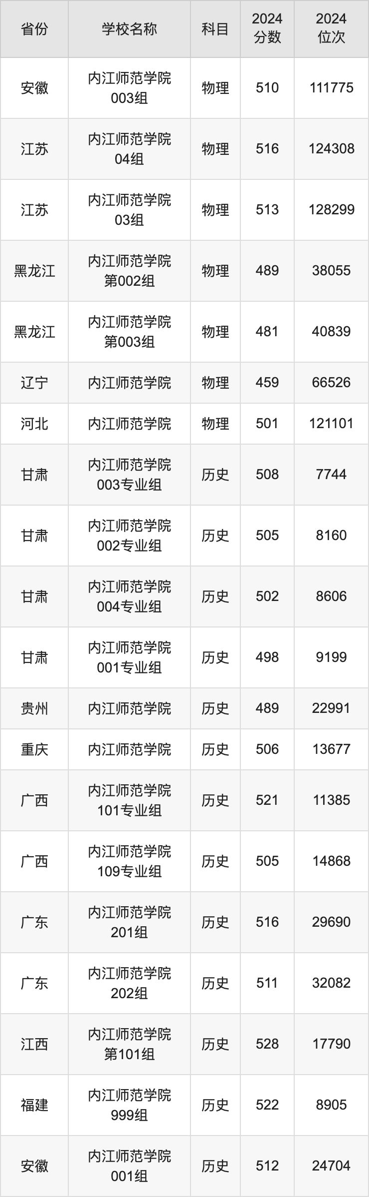 可见,内江师范学院的不同科目,在“招生专业、录取分数线”等方面有较大区别。不同科目组之间的分数线差距高达-3分。