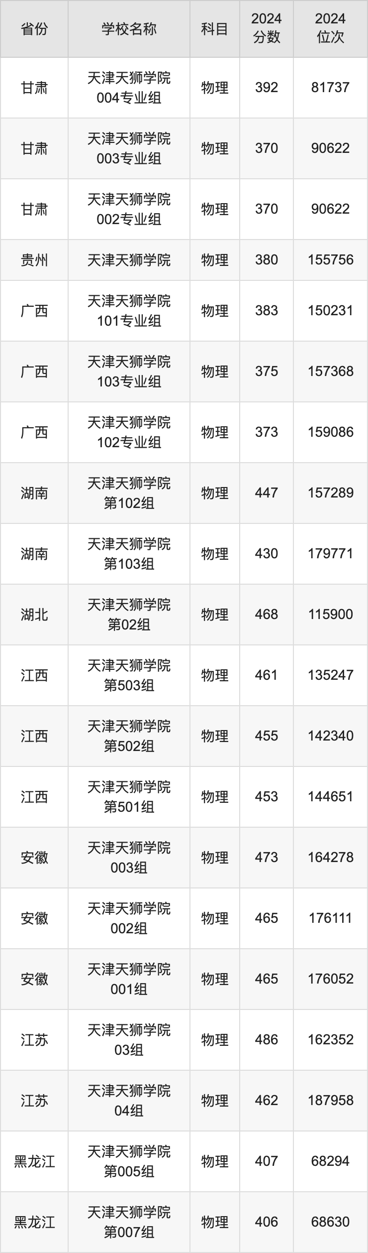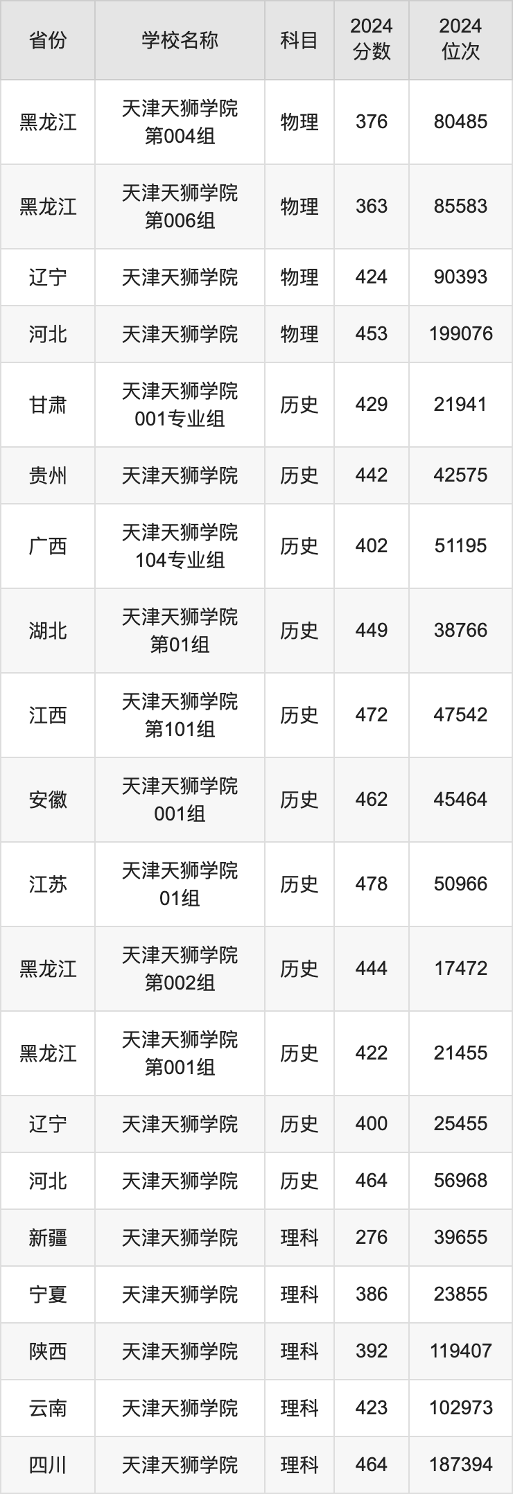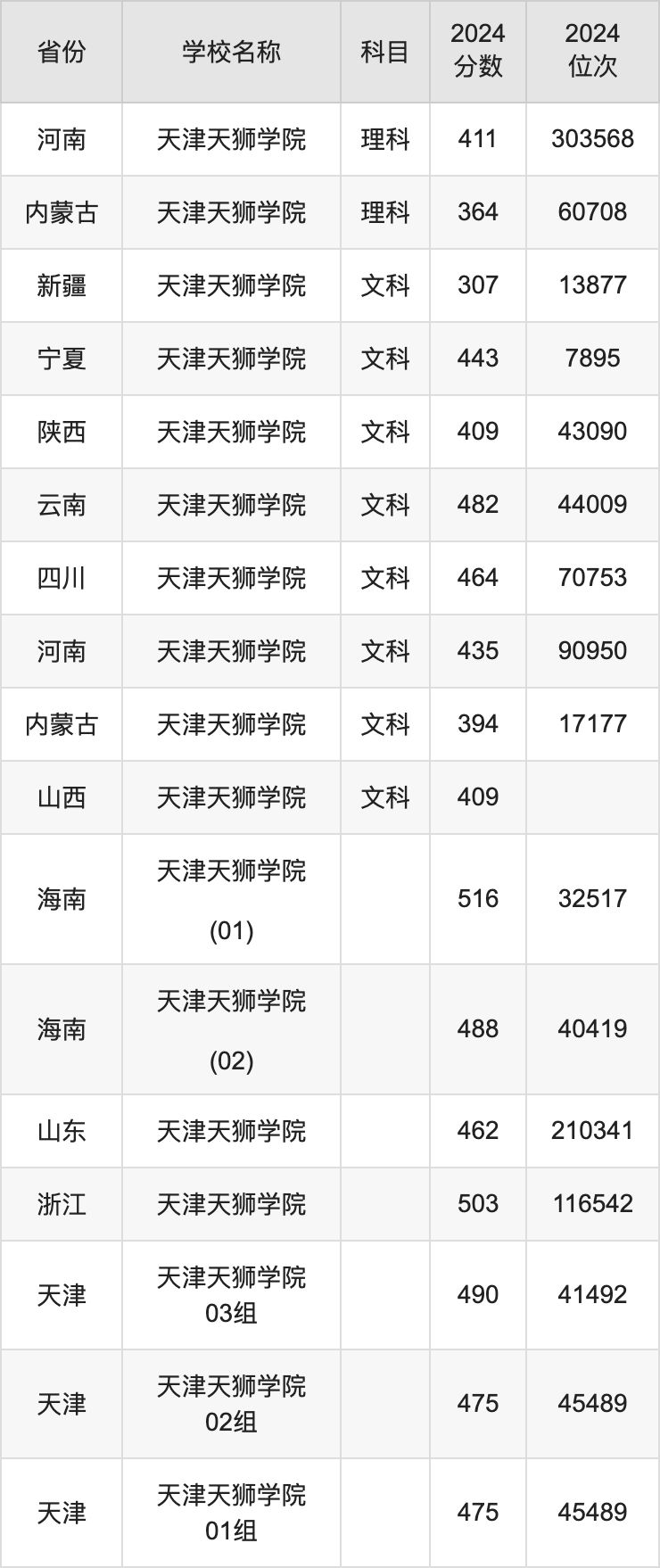 一、2024天津天狮学院录取分数线