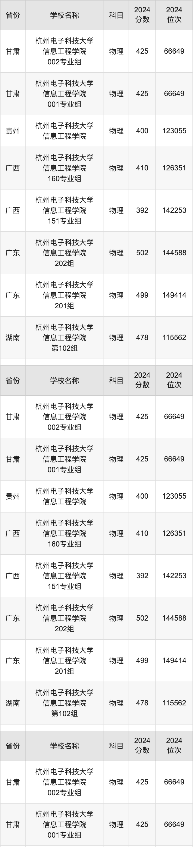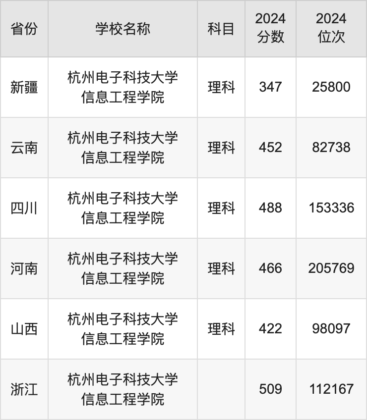 一、2024杭州电子科技大学信息工程学院录取分数线