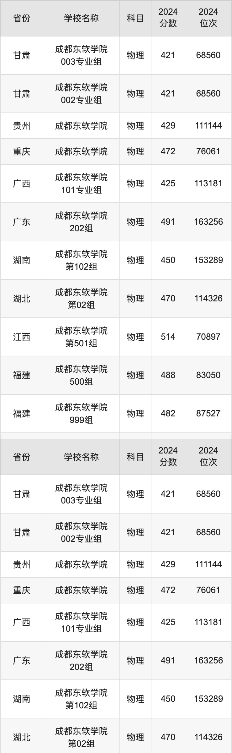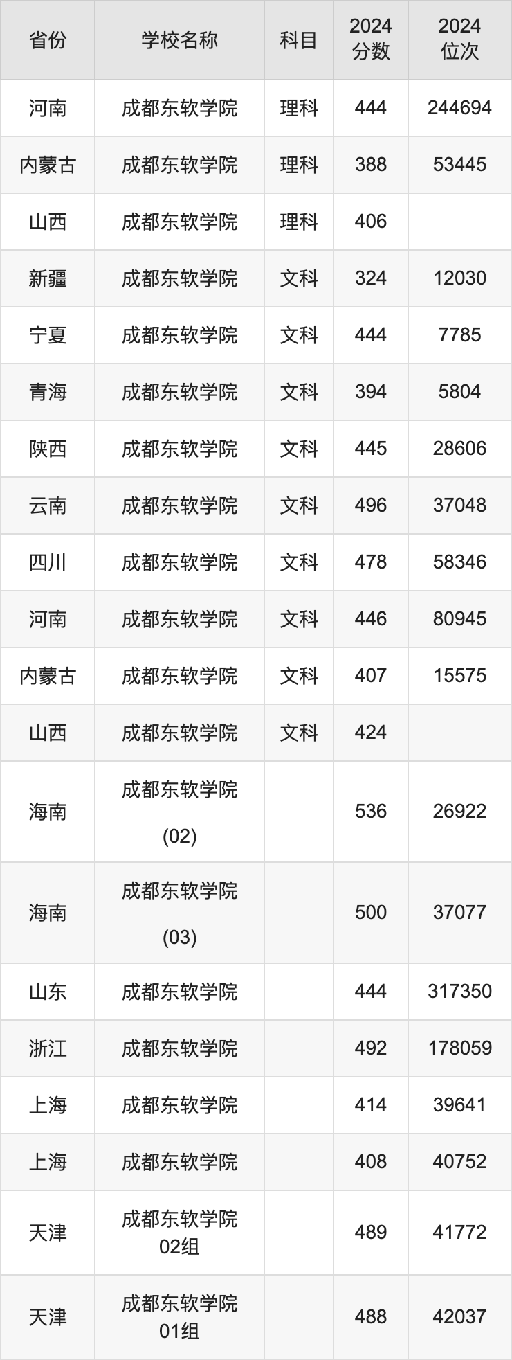 可见,成都东软学院的不同科目,在“招生专业、录取分数线”等方面有较大区别。不同科目组之间的分数线差距高达2分。