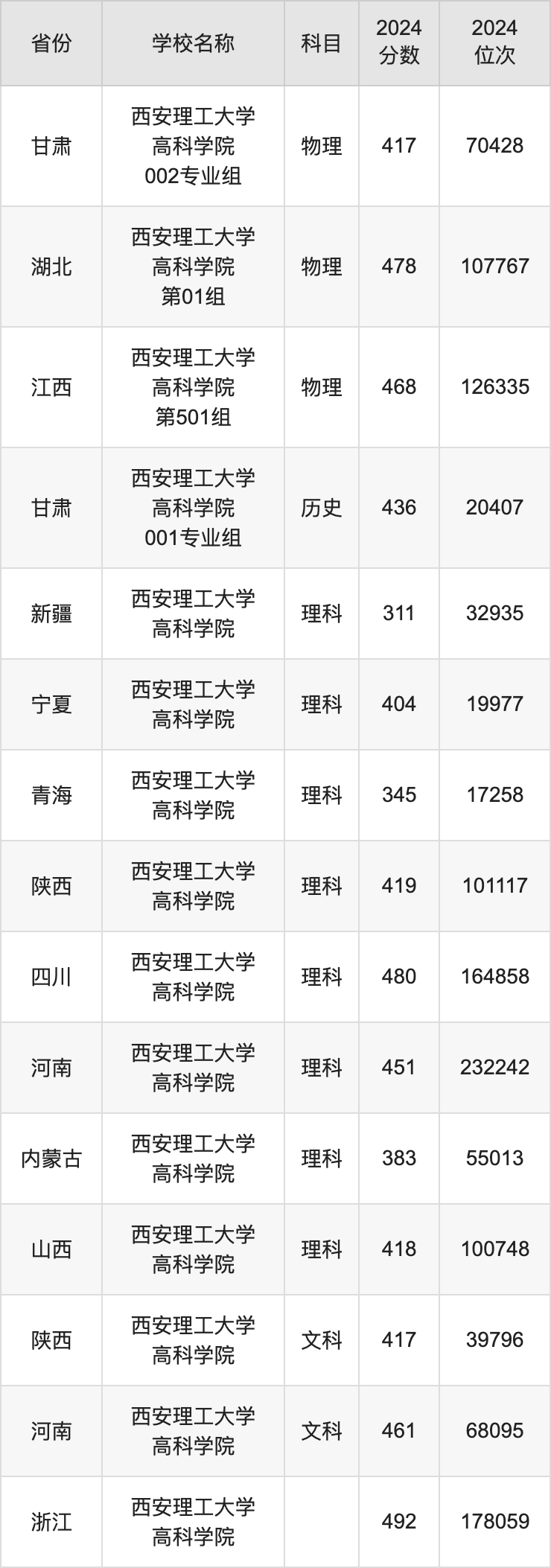 2024年西安理工大学高科学院在全国各省本科的最低录取分数线在311~492分之间。浙江高考生最低492分能上西安理工大学高科学院、四川理科高考生最低480分能上西安理工大学高科学院……下文将展示西安理工大学高科学院在全国12个高考省份中的本科最低投档录取分汇总!