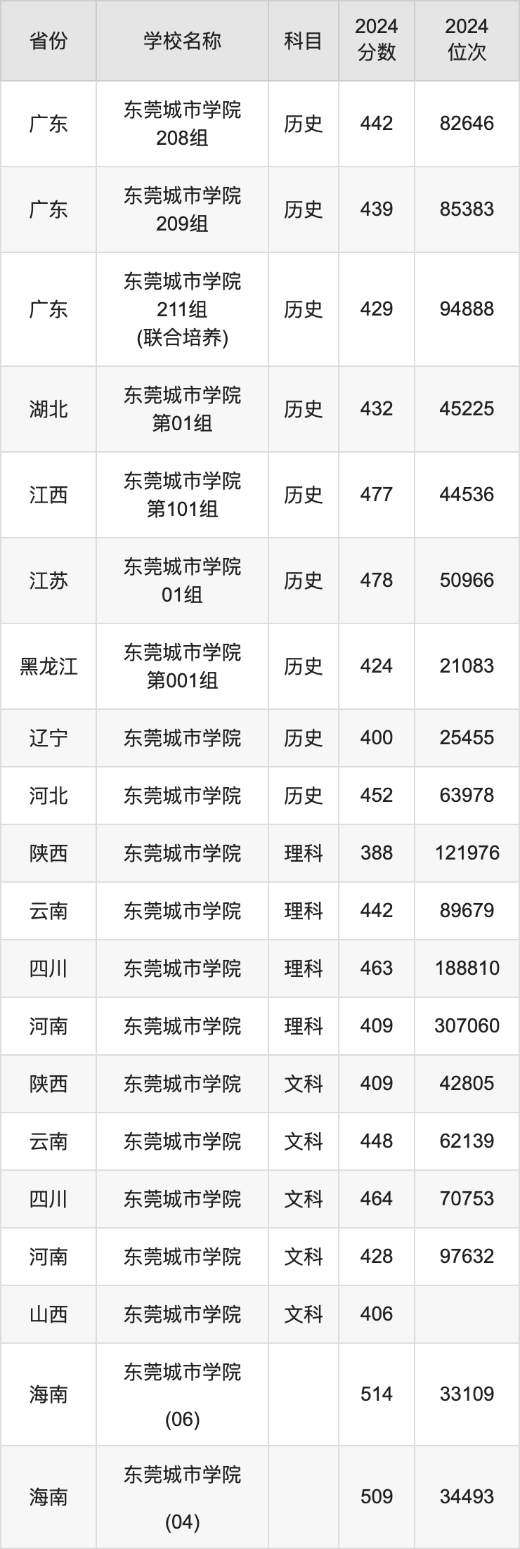 可见,东莞城市学院的不同专业组,在“招生专业、录取分数线”等方面有较大区别。物理类专业组之间的分数线差距高达24分、历史类专业组之间的分数线差距高达13分。
