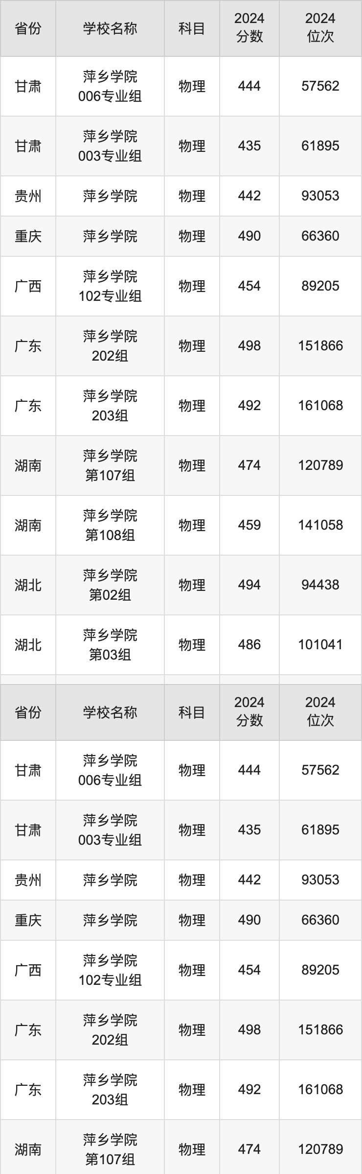 可见,萍乡学院的不同专业组,在“招生专业、录取分数线”等方面有较大区别。物理类专业组之间的分数线差距高达2分、历史类专业组之间的分数线差距高达5分。