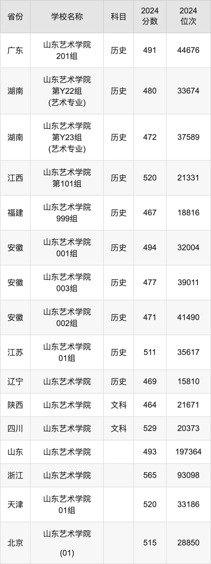 2024年山东艺术学院在全国各省本科的最低录取分数线在464~565分之间。浙江高考生最低565分能上山东艺术学院、四川文科高考生最低529分能上山东艺术学院……下文将展示山东艺术学院在全国13个高考省份中的本科最低投档录取分汇总!