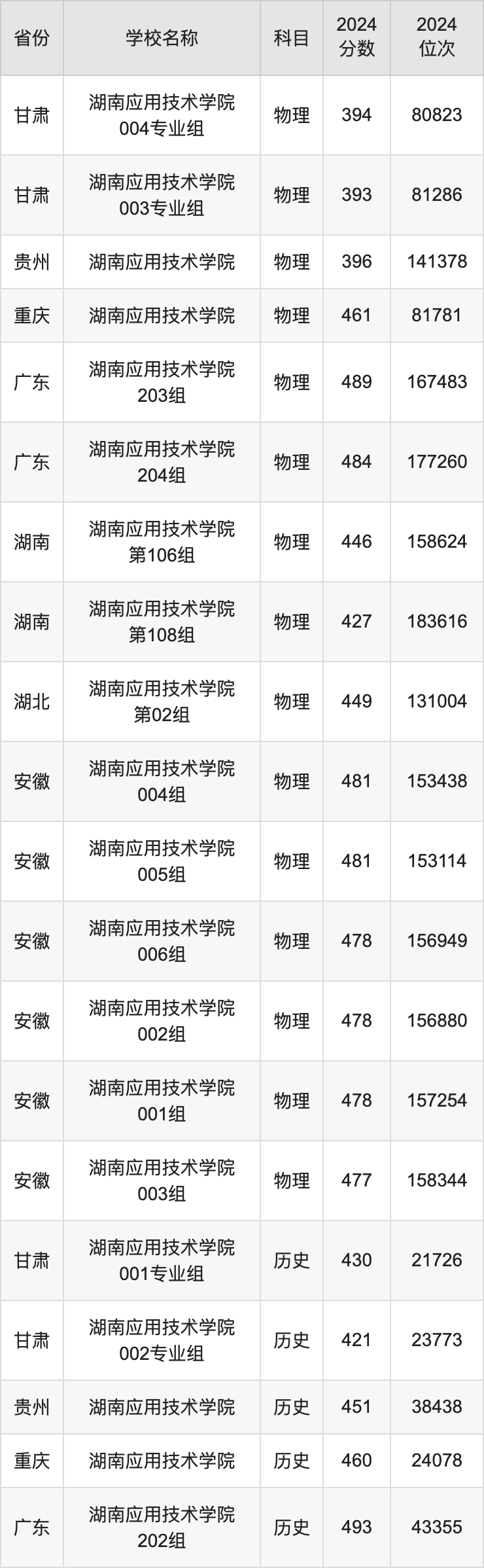 可见,湖南应用技术学院的不同专业组,在“招生专业、录取分数线”等方面有较大区别。物理类专业组之间的分数线差距高达19分、历史类专业组之间的分数线差距高达6分。