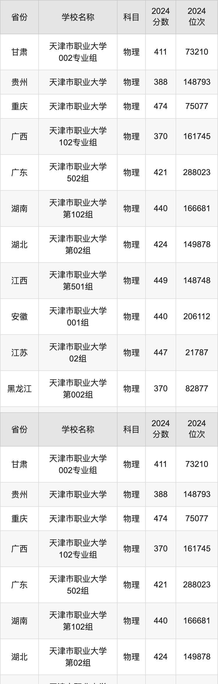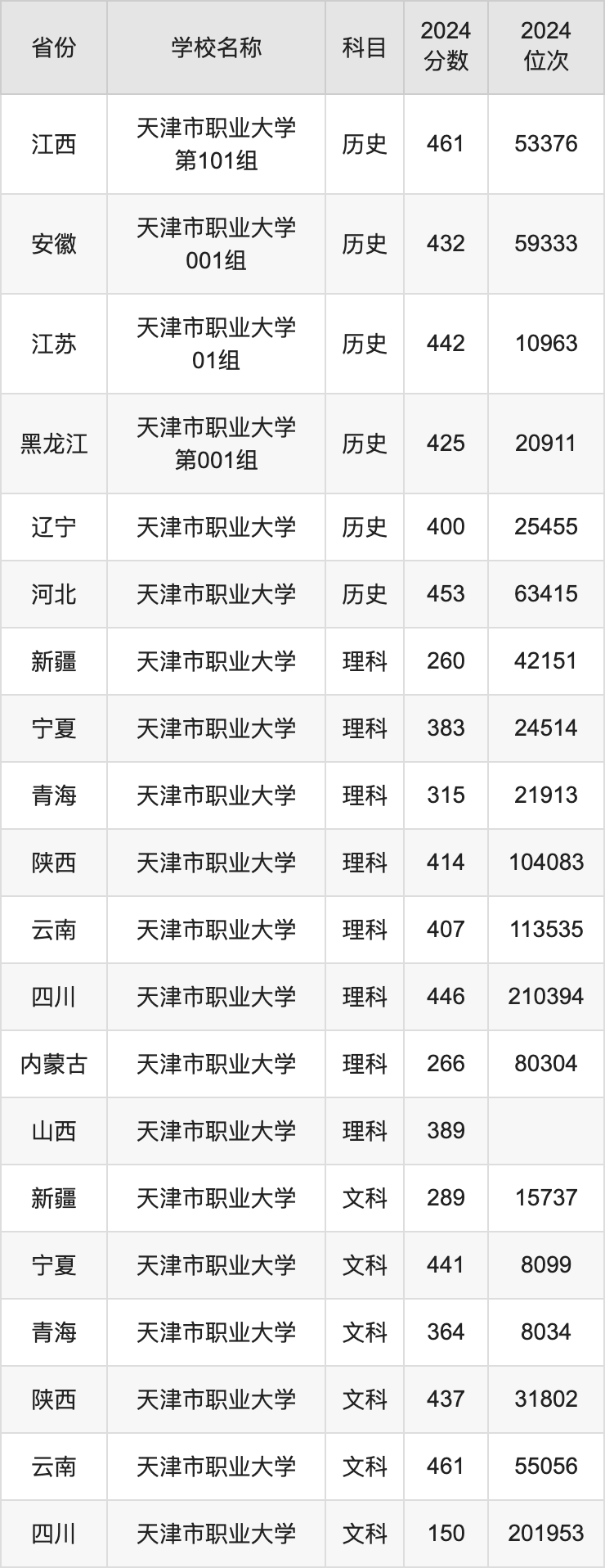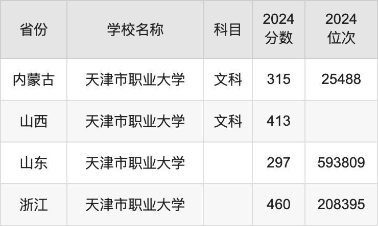 一、2024天津市职业大学录取分数线