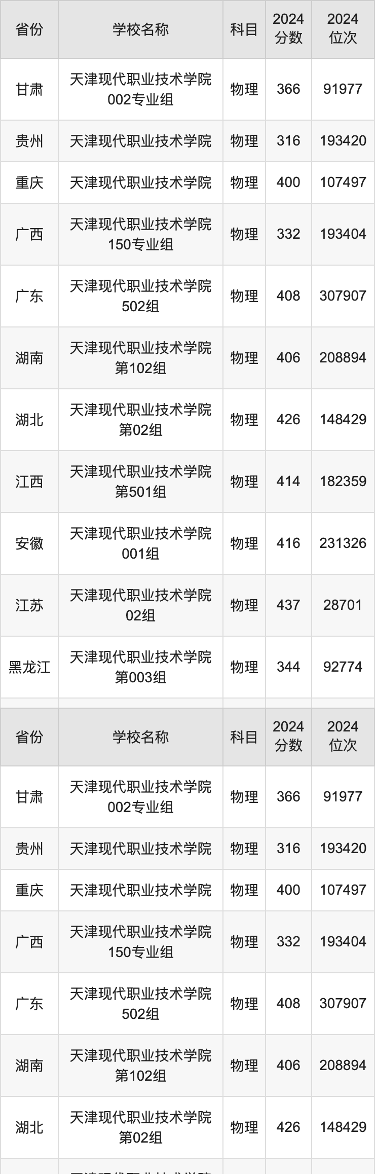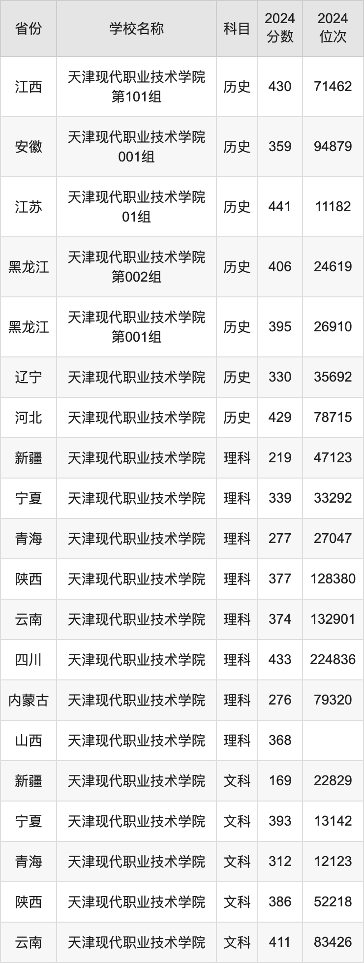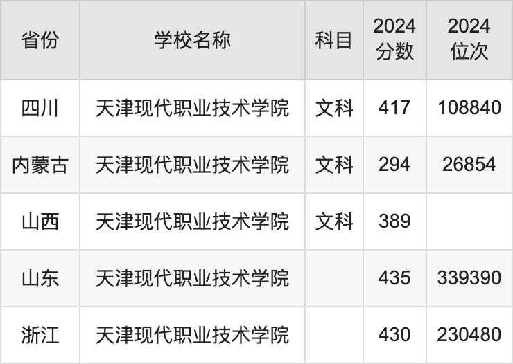 一、2024天津现代职业技术学院录取分数线