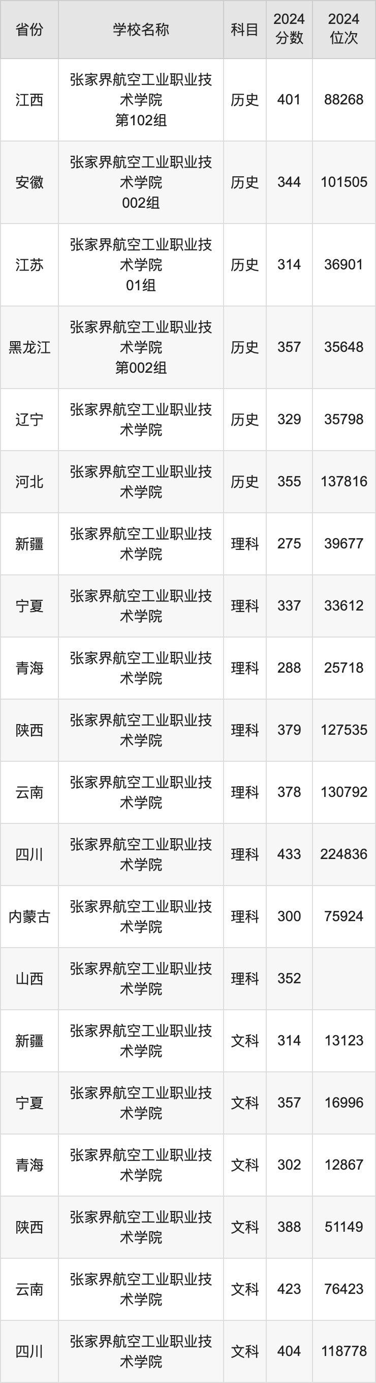 2024年张家界航空工业职业技术学院在全国各省专科的最低录取分数线在275~433分之间。四川理科高考生最低433分能上张家界航空工业职业技术学院、河北物理类高考生最低425分能上张家界航空工业职业技术学院……下文将展示张家界航空工业职业技术学院在全国22个高考省份中的专科最低投档录取分汇总!