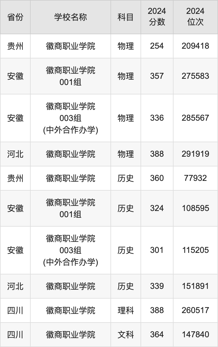 2024年徽商职业学院在全国各省专科的最低录取分数线在254~388分之间。河北物理类高考生最低388分能上徽商职业学院、四川理科高考生最低388分能上徽商职业学院……下文将展示徽商职业学院在全国4个高考省份中的专科最低投档录取分汇总!