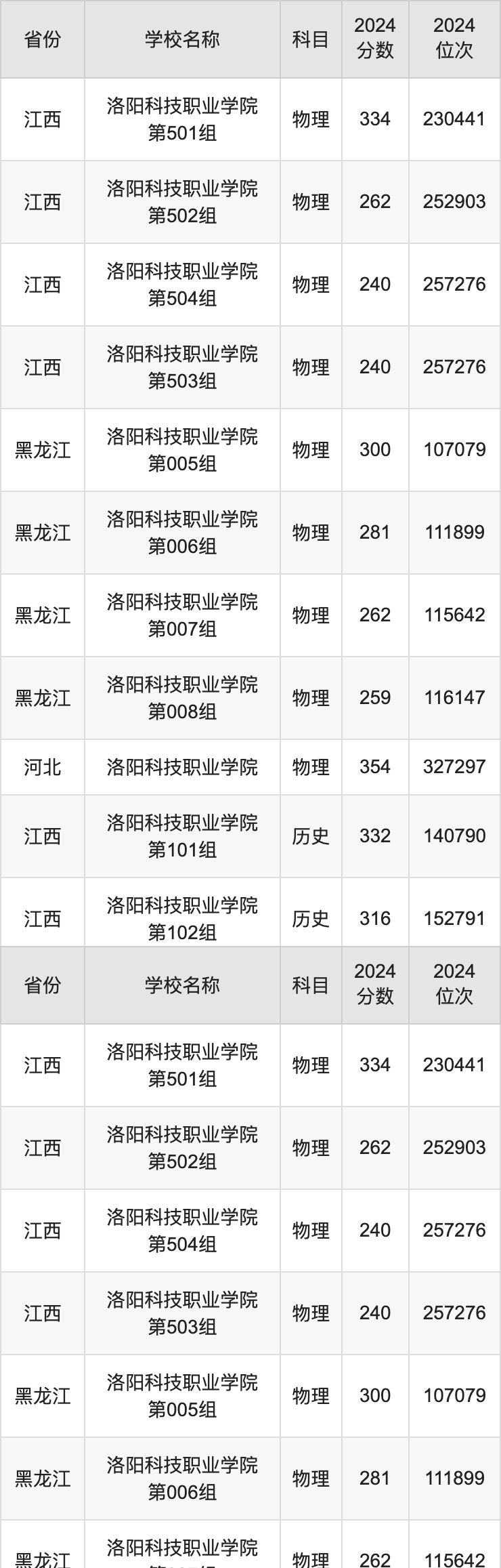 2024年洛阳科技职业学院在全国各省专科的最低录取分数线在238~354分之间。河北物理类高考生最低354分能上洛阳科技职业学院、江西物理类高考生最低334分能上洛阳科技职业学院……下文将展示洛阳科技职业学院在全国4个高考省份中的专科最低投档录取分汇总!