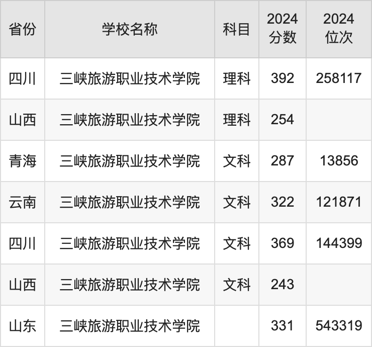 2024年三峡旅游职业技术学院在全国各省专科的最低录取分数线在224~392分之间。四川理科高考生最低392分能上三峡旅游职业技术学院、河北物理类高考生最低389分能上三峡旅游职业技术学院……下文将展示三峡旅游职业技术学院在全国14个高考省份中的专科最低投档录取分汇总!