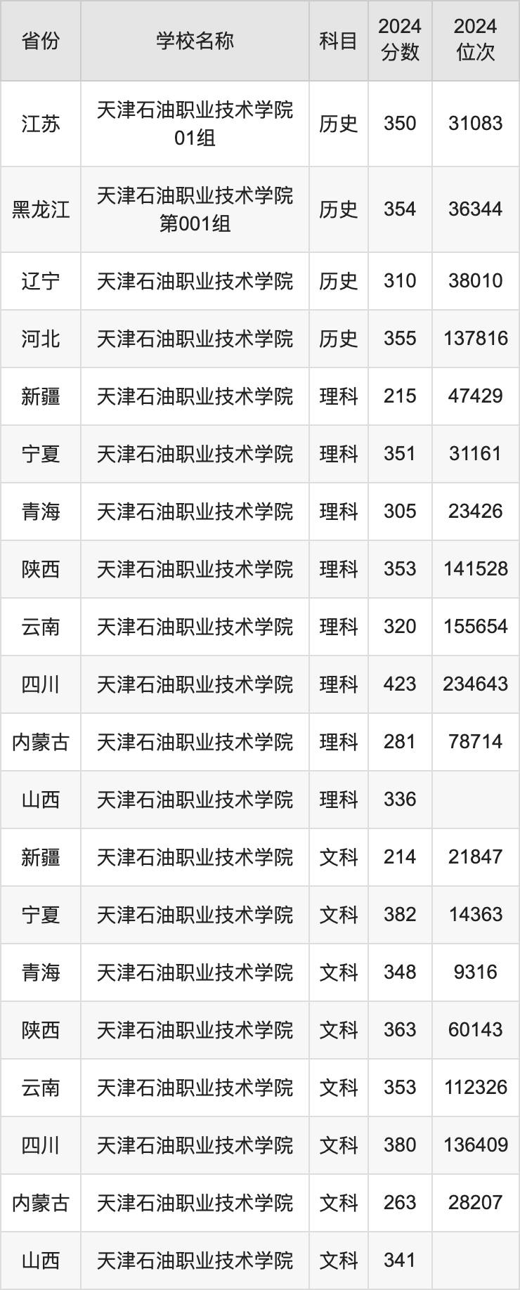 2024年天津石油职业技术学院在全国各省专科的最低录取分数线在214~423分之间。四川理科高考生最低423分能上天津石油职业技术学院、江苏物理类高考生最低412分能上天津石油职业技术学院……下文将展示天津石油职业技术学院在全国21个高考省份中的专科最低投档录取分汇总!