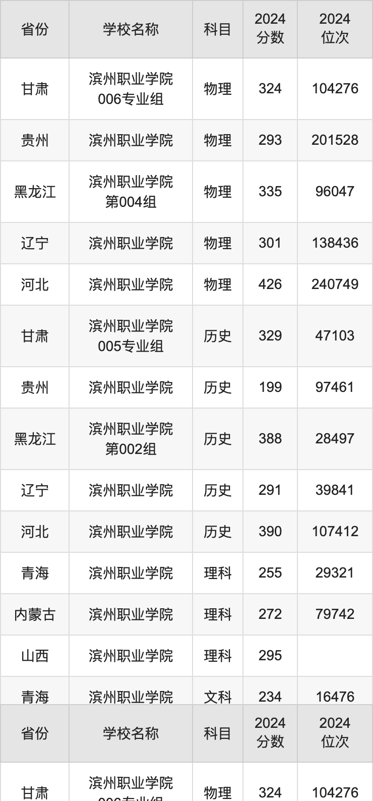2024年滨州职业学院在全国各省专科的最低录取分数线在199~426分之间。河北物理类高考生最低426分能上滨州职业学院、黑龙江物理类高考生最低335分能上滨州职业学院……下文将展示滨州职业学院在全国9个高考省份中的专科最低投档录取分汇总!