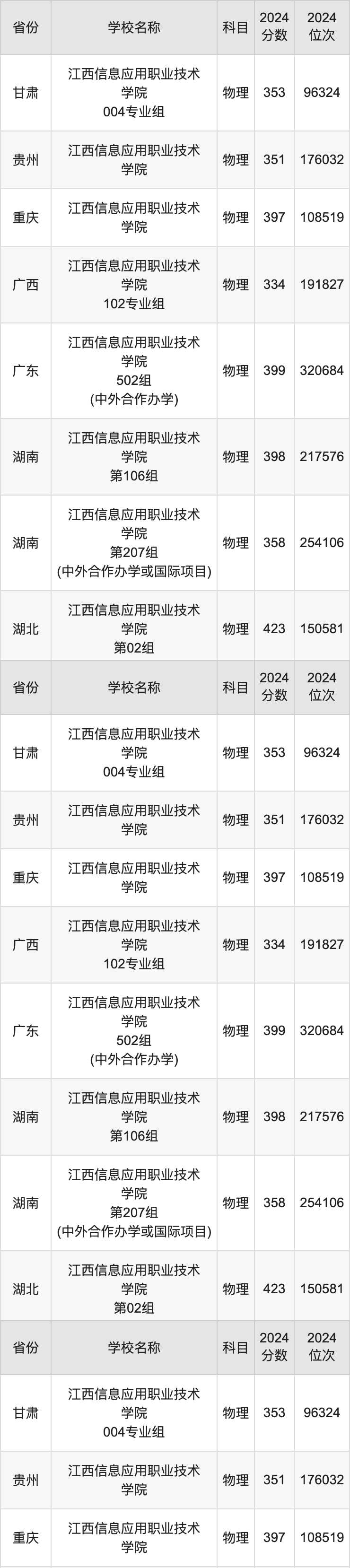 2024年江西信息应用职业技术学院在全国各省专科的最低录取分数线在206~436分之间。四川理科高考生最低436分能上江西信息应用职业技术学院、江苏物理类高考生最低435分能上江西信息应用职业技术学院……下文将展示江西信息应用职业技术学院在全国22个高考省份中的专科最低投档录取分汇总!