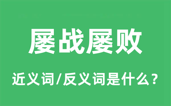 通过屡战屡败的近反义词,能够帮助大家了解屡战屡败的含义及用法,下面整理出屡战屡败的近义词和屡战屡败的反义词,以及屡战屡败的意思解释,希望对大家有所帮助。