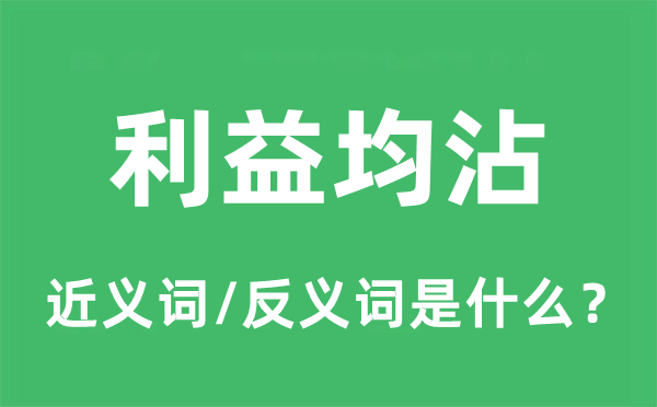通过利益均沾的近反义词,能够帮助大家了解利益均沾的含义及用法,下面整理出利益均沾的近义词和利益均沾的反义词,以及利益均沾的意思解释,希望对大家有所帮助。