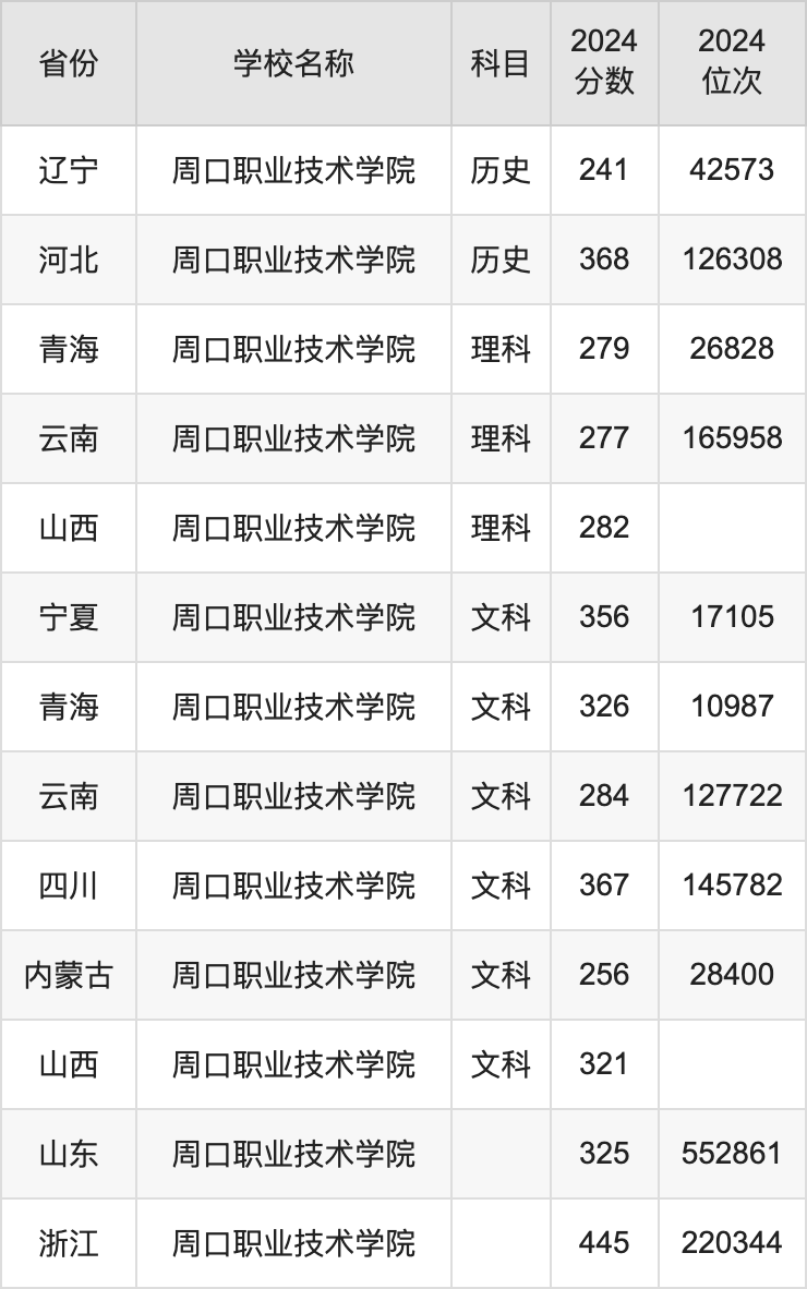 2024年周口职业技术学院在全国各省专科的最低录取分数线在180~445分之间。浙江高考生最低445分能上周口职业技术学院、河北物理类高考生最低419分能上周口职业技术学院……下文将展示周口职业技术学院在全国19个高考省份中的专科最低投档录取分汇总!