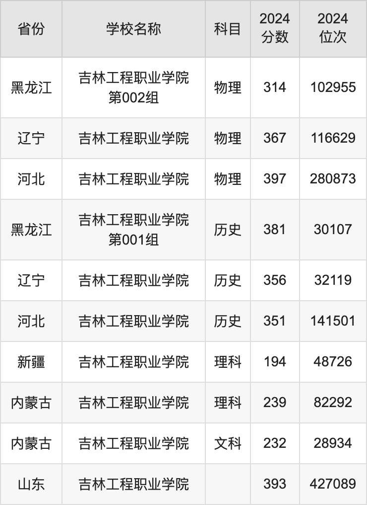 2024年吉林工程职业学院在全国各省专科的最低录取分数线在194~397分之间。河北物理类高考生最低397分能上吉林工程职业学院、山东高考生最低393分能上吉林工程职业学院……下文将展示吉林工程职业学院在全国6个高考省份中的专科最低投档录取分汇总!
