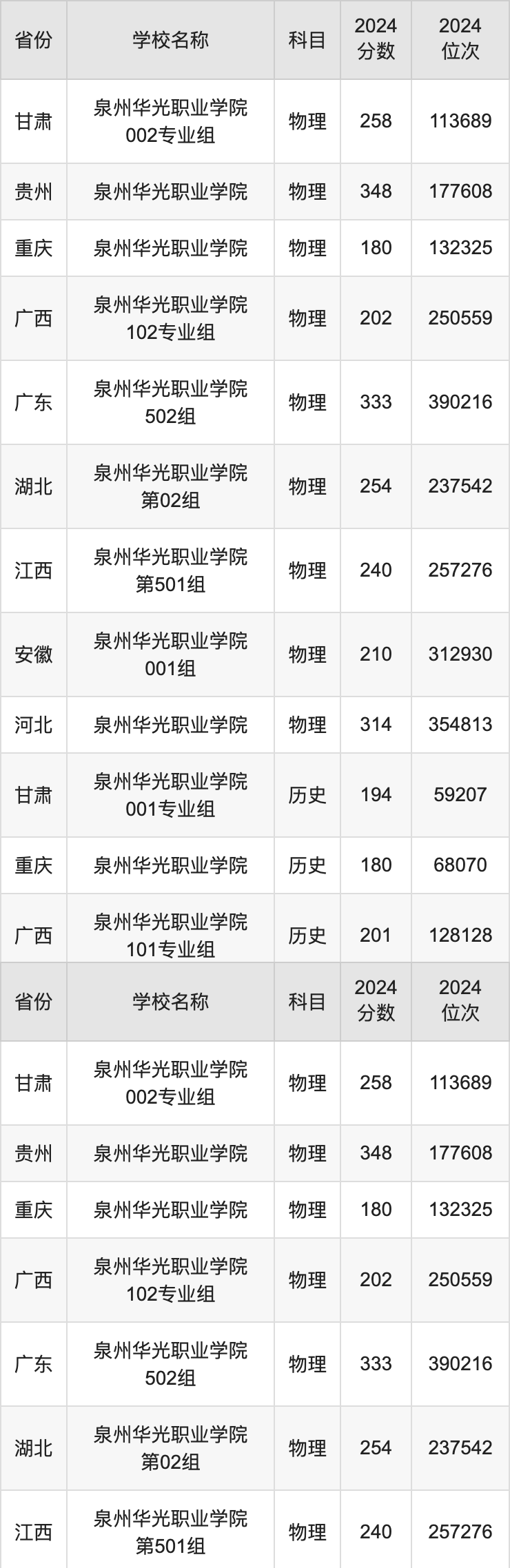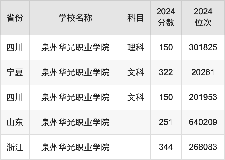 一、2024泉州华光职业学院录取分数线