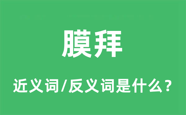 通过膜拜的近反义词,能够帮助大家了解膜拜的含义及用法,下面整理出膜拜的近义词和膜拜的反义词,以及膜拜的意思解释,希望对大家有所帮助。