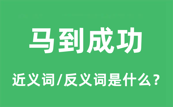 通过马到成功的近反义词,能够帮助大家了解马到成功的含义及用法,下面整理出马到成功的近义词和马到成功的反义词,以及马到成功的意思解释,希望对大家有所帮助。
