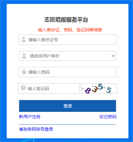 首次登录注册账户和提交志愿信息时均需使用高考报名时填报的“联系电话”接收短信验证码,如需修改,请联系高考报名点或各地教育招生考试机构。如遗忘密码,请按照登录页面“忘记密码”流程重置密码。