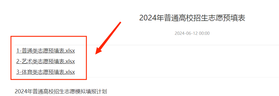 点击以下链接即可查看2024年普通高校招生志愿预填表: