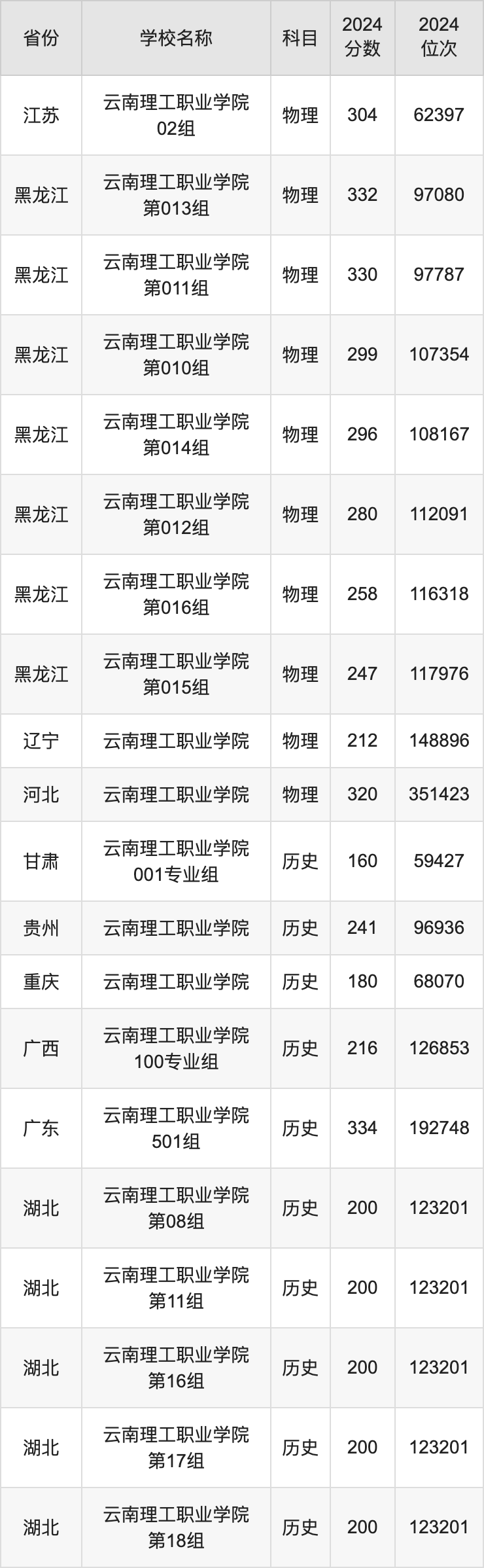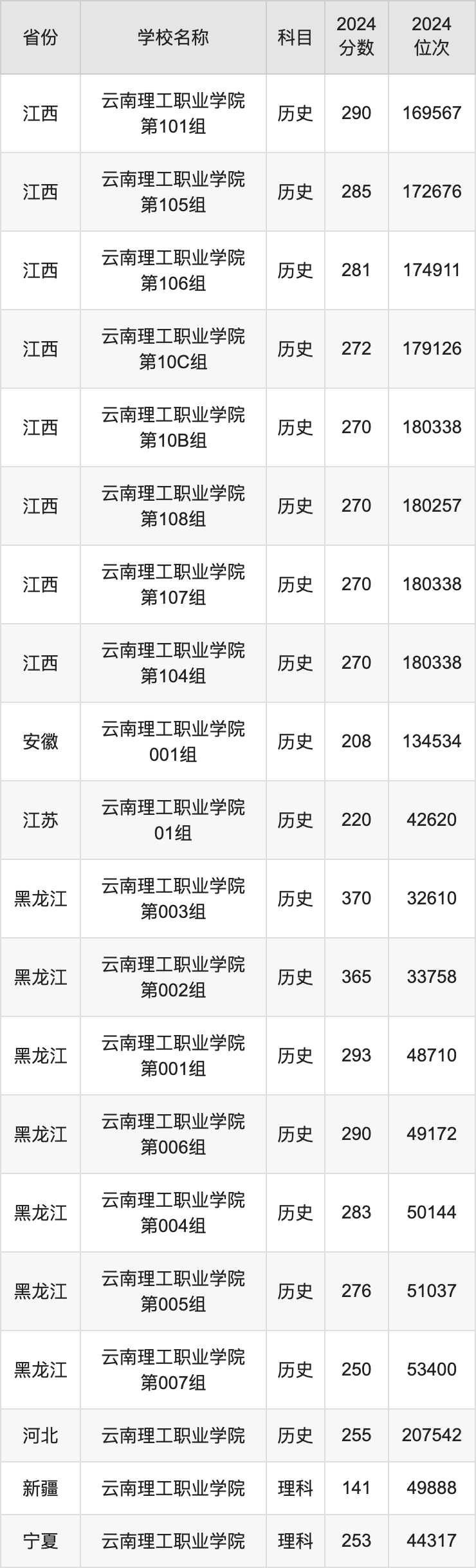 可见,云南理工职业学院的不同科目,在“招生专业、录取分数线”等方面有较大区别。不同科目组之间的分数线差距高达-4分。