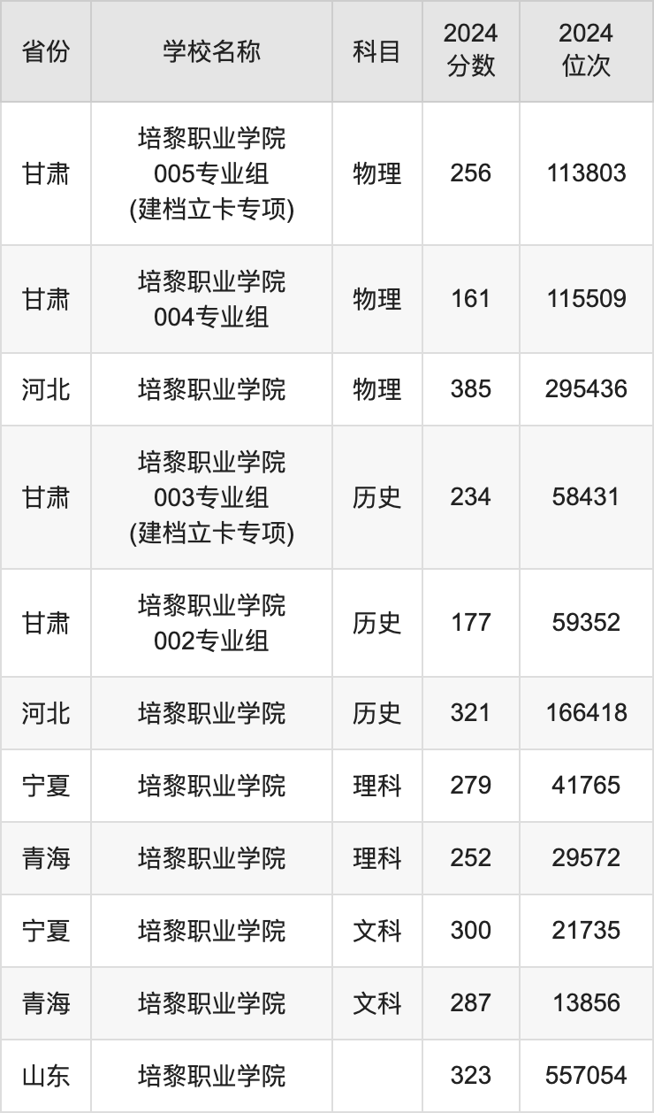 2024年培黎职业学院在全国各省专科的最低录取分数线在161~385分之间。河北物理类高考生最低385分能上培黎职业学院、山东高考生最低323分能上培黎职业学院……下文将展示培黎职业学院在全国5个高考省份中的专科最低投档录取分汇总!