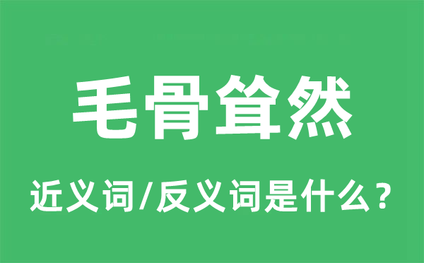 通过熟练掌握毛骨耸然的近义词和反义词,能够帮助大家详细了解毛骨耸然是什么意思,那么,毛骨耸然的近义词是什么?毛骨耸然的反义词又是什么呢?下面为大家整理了毛骨耸然的近义词和毛骨耸然的反义词,以及毛骨耸然的意思解释,希望可以帮助到大家。