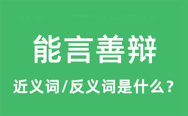 通过能言善辩的近反义词,能够帮助大家了解能言善辩的含义及用法,下面整理出能言善辩的近义词和能言善辩的反义词,以及能言善辩的意思解释,希望对大家有所帮助。