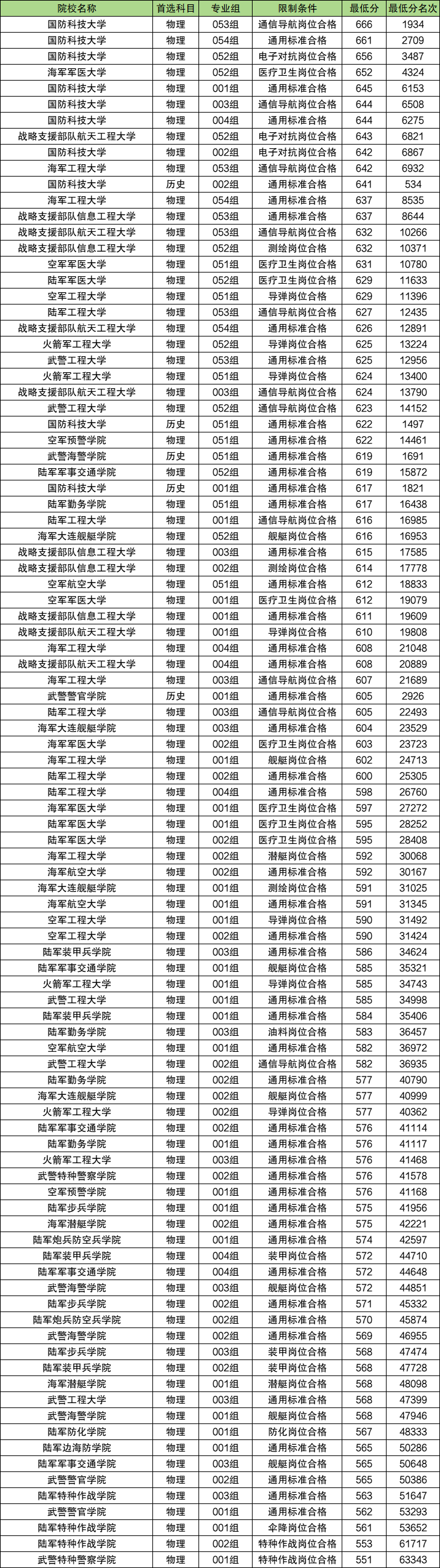 完整2024年军校录取分数线一览表见下(可滑动查看):