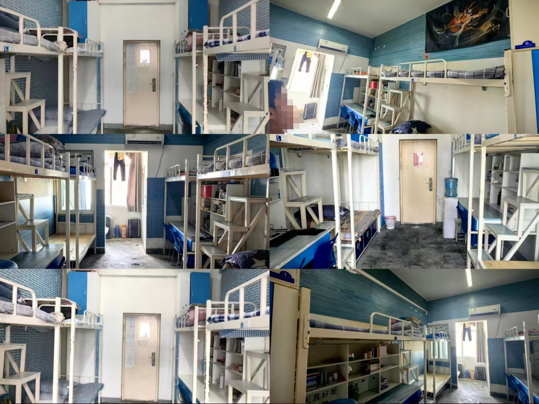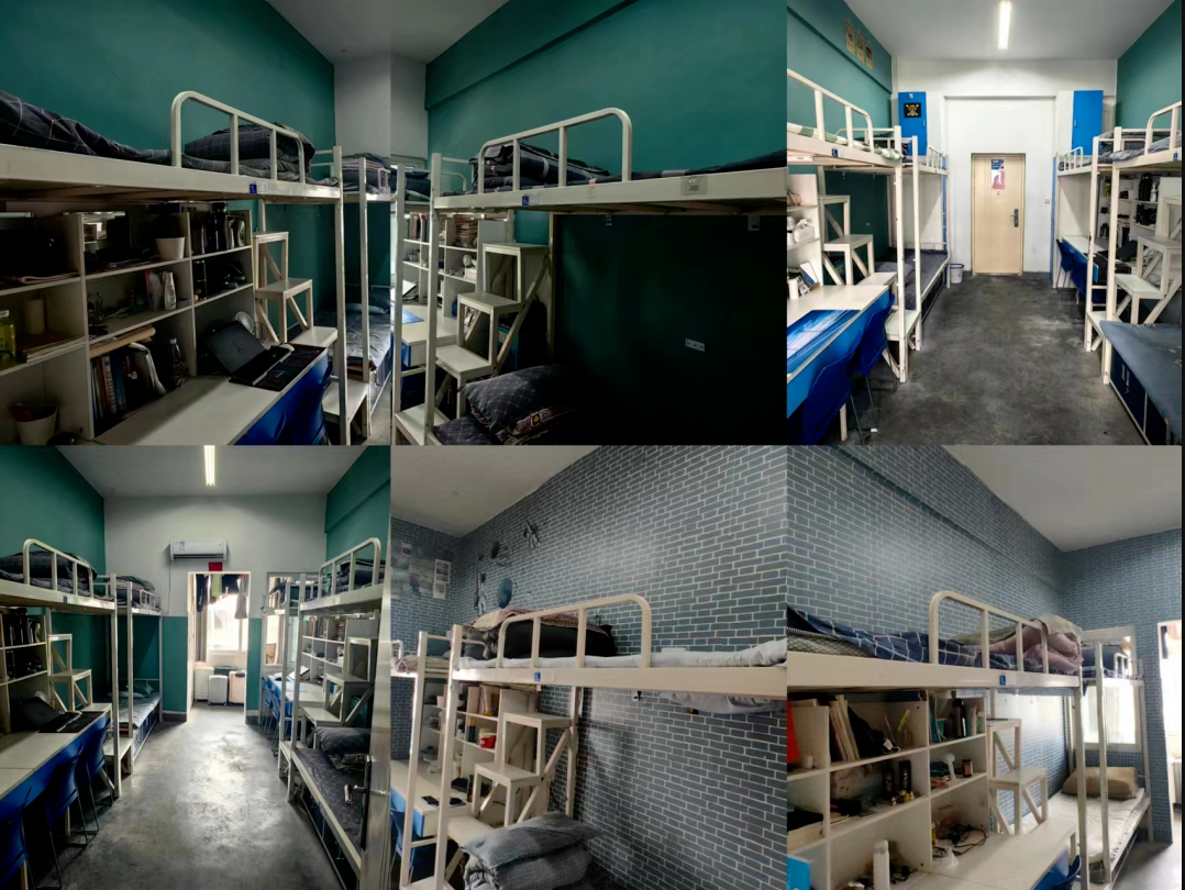 学校宿舍为标准6人间,上床下桌,内有阳台和独立卫生间