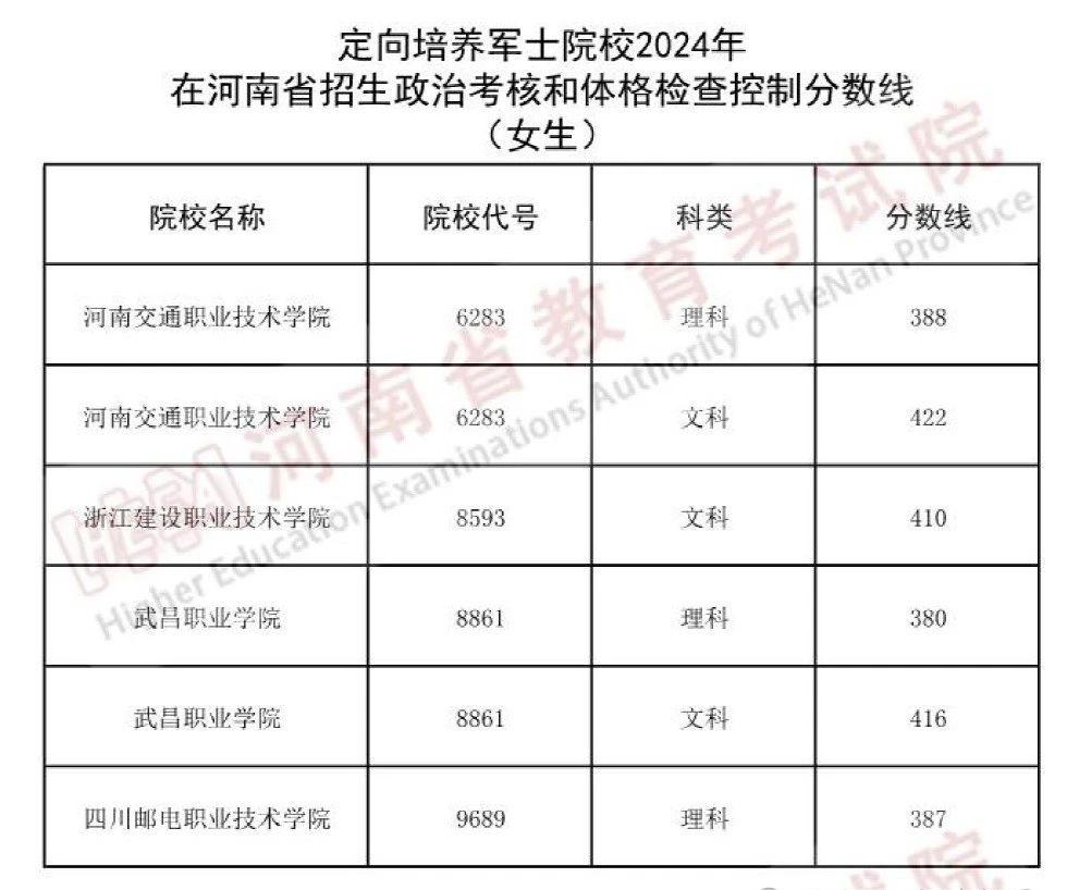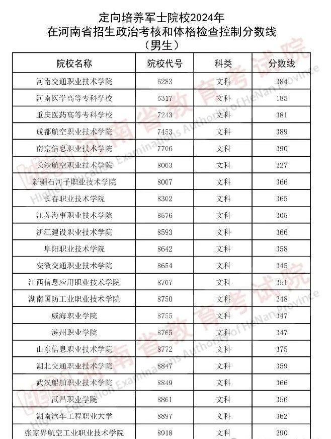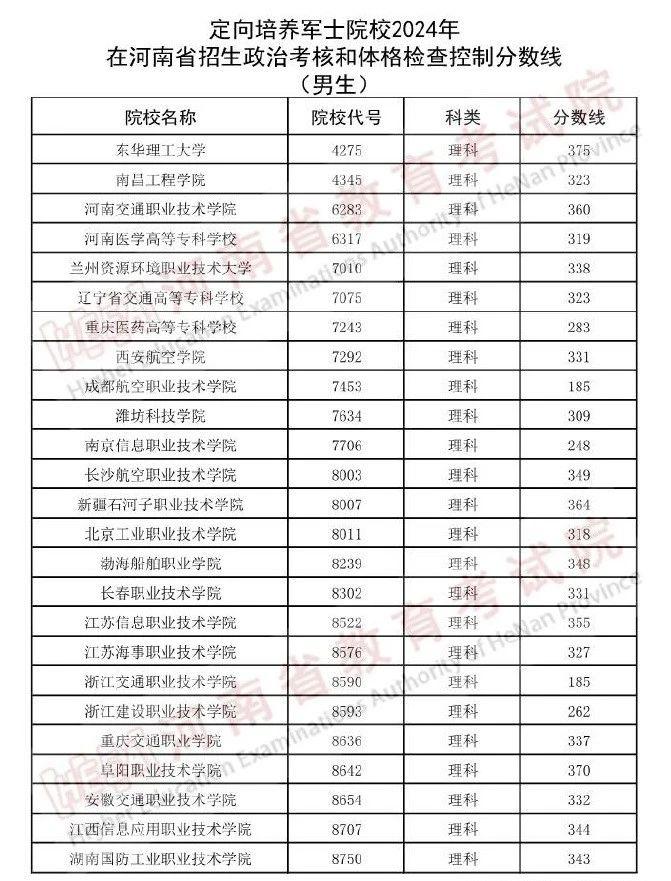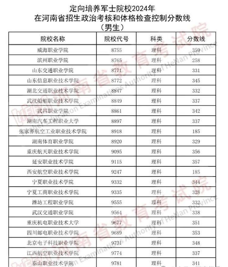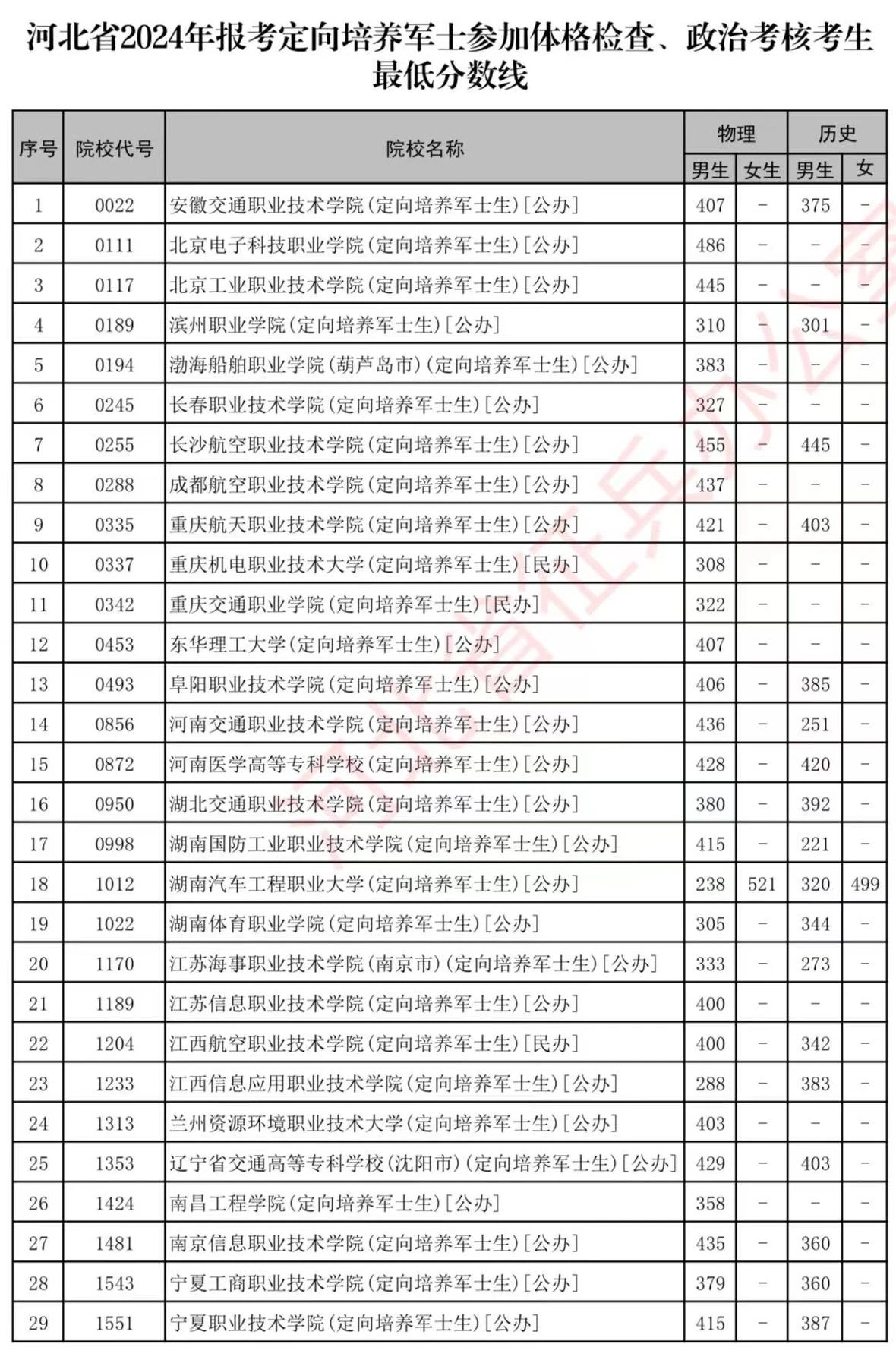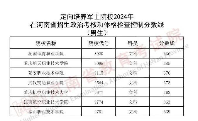 2024定向士官录取分数线因省而异,比如在安徽:历史类最低358分、物理类最低388分;在江苏:物理类最低407分、历史类最低336分。本文整理各个士官学校最低分汇总,并附上15个地区士官面试体检分数线,2025届考生可参考。