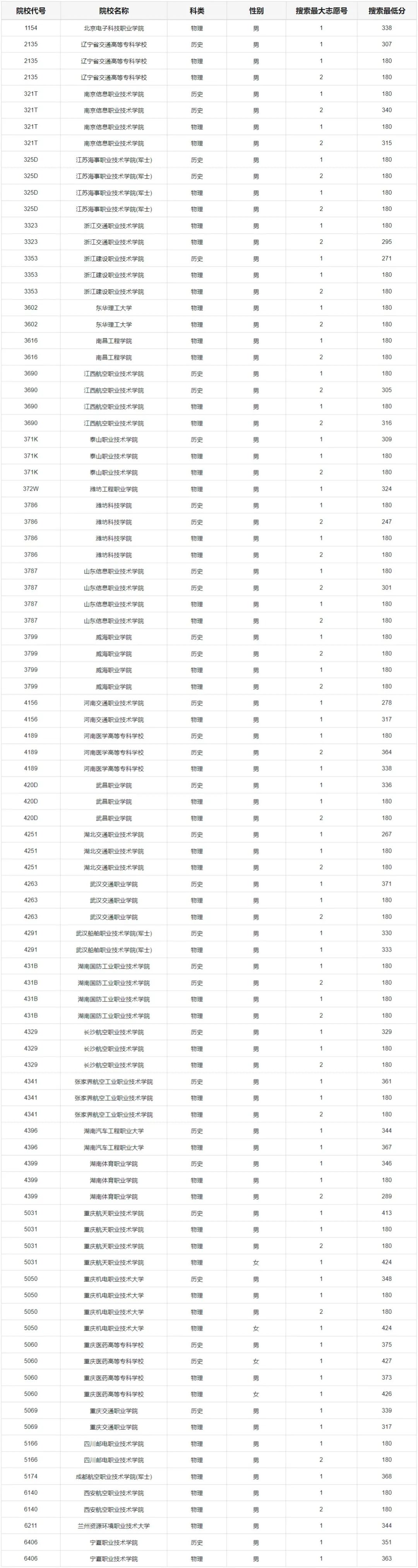 | 成都航空职业技术学院 | 物理 | 男 | 360 |