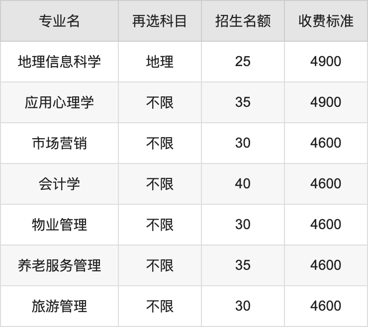 | 本科批 | 物理 | 旅游管理 | 10 |