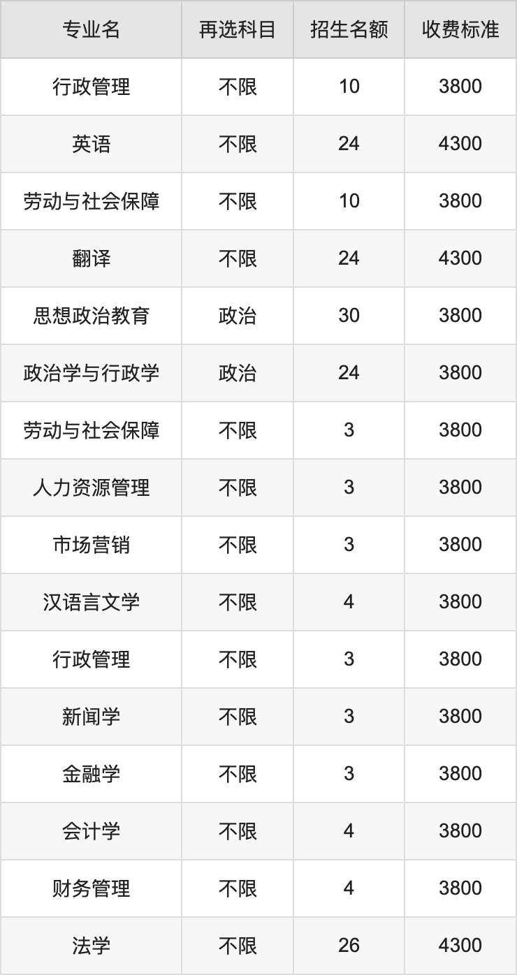 | 本科批 | 历史 | 劳动与社会保障 | 10 |